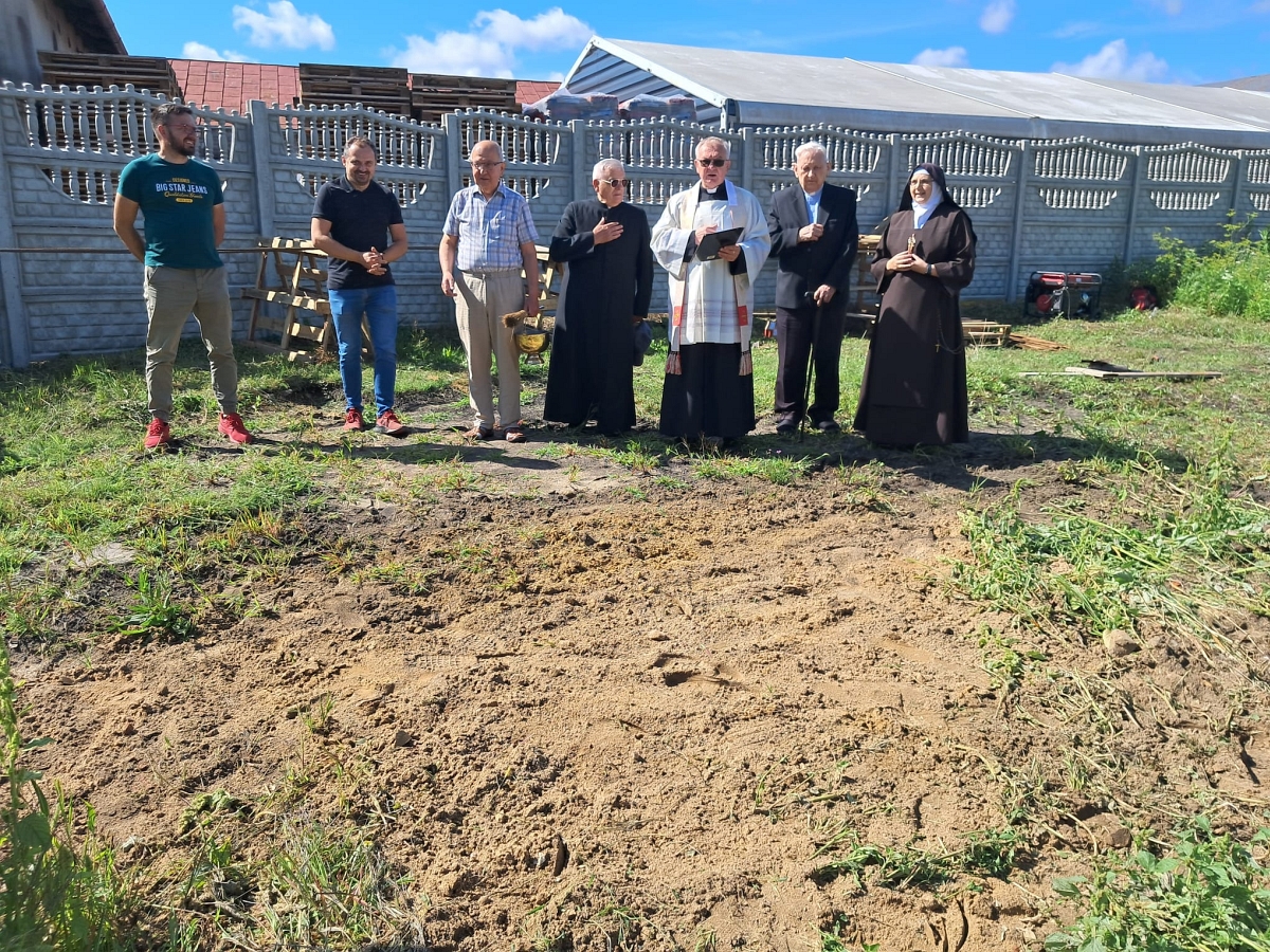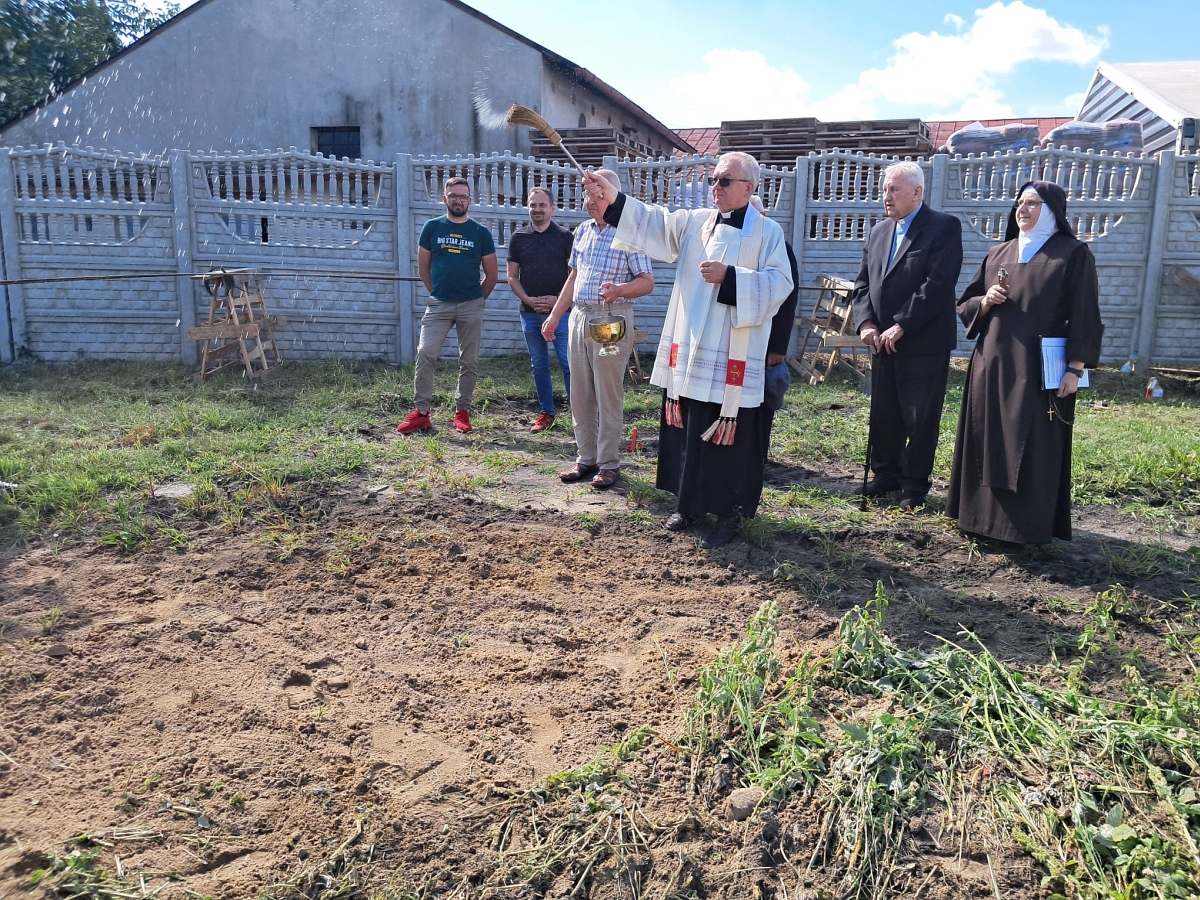 Podczas sierpniowego poświęcenia placu obecni byli m.in.: ks. Marian Stochniałek, ks. Andrzej Kornacki, dr Włodzimierz Sygulski, siostra Samuela Lach, architekt i współautor projektu budowlanego Marcin Mielczarek a także prezes budowy Mariusz K. Karczewski. Uczestnicy podkreślali, że inwestycja ma nie tylko znaczenie materialne ale przede wszystkim duchowe gdyż będzie miejscem modlitwy, formacji i wsparcia dla lokalnej społeczności.