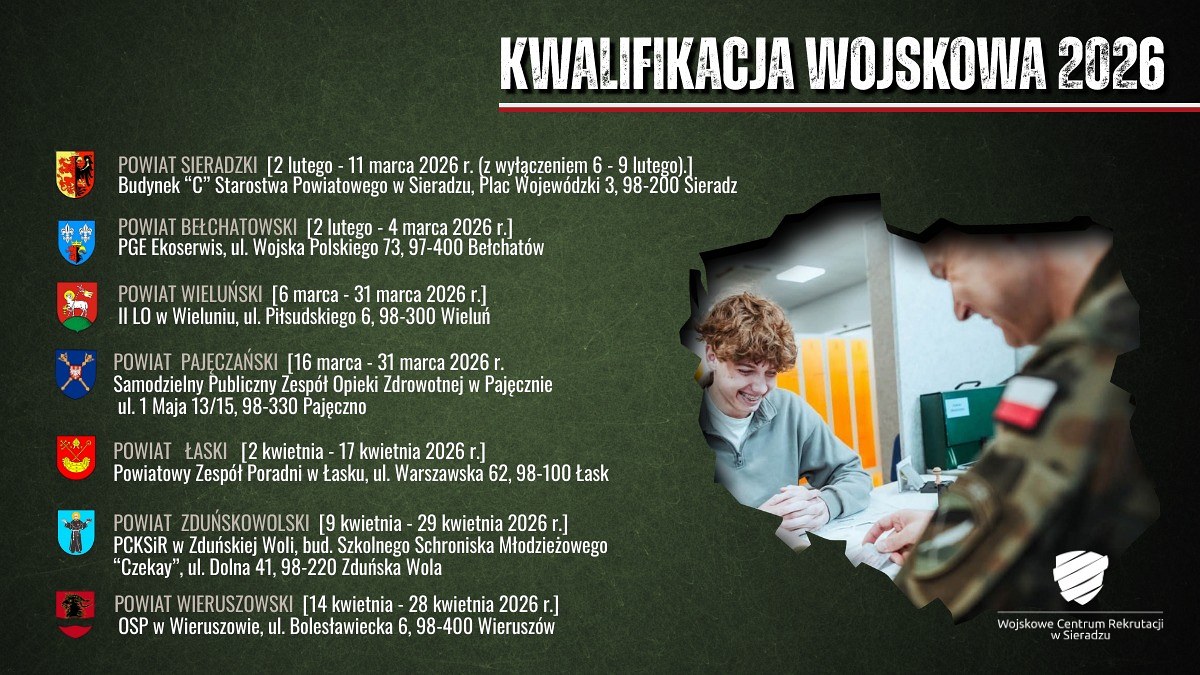 Dla tych, którzy myślą o wojsku jako o swojej przyszłości, kwalifikacja może być pierwszym krokiem do świadomej decyzji. Podczas komisji będzie możliwość rozmowy z przedstawicielami Wojskowego Centrum Rekrutacji w Sieradzu, którzy udzielą informacji o: