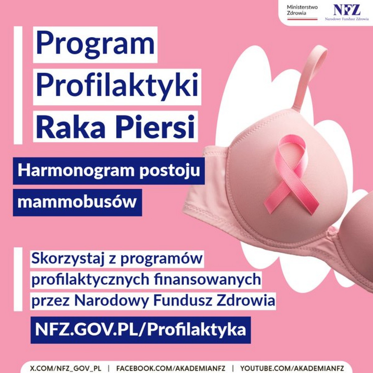 LISTA POSTOJÓW MAMMOBUSÓW: https://www.nfz-lodz.pl/dlapacjentow/aktualnosci/6465-zbadaj-piersi-sprawdz-gdzie-skorzystac-z-mammografii-w-dniach lub pod numerem całodobowej bezpłatnej infolinii 800 190 590.