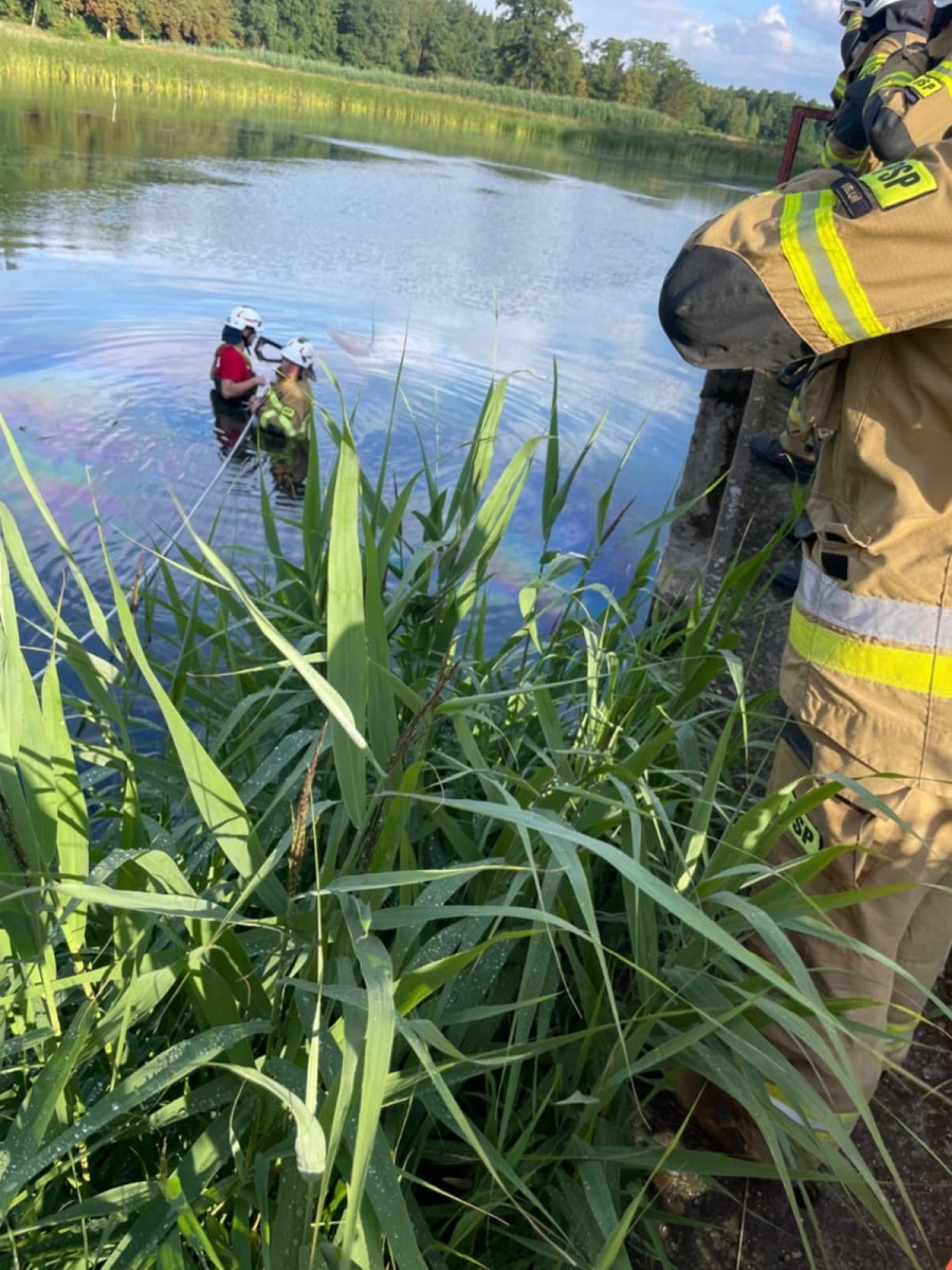 Auto zostało wyciągnięte z wody, to osobowy Volkswagen Lupo. W pojeździe nikogo nie było. Obecnie trwają czynności mające na celu dotarcie do właściciela pojazdu. Mundurowi ponadto ustalają, w jakich okolicznościach auto znalazło się w stawie.