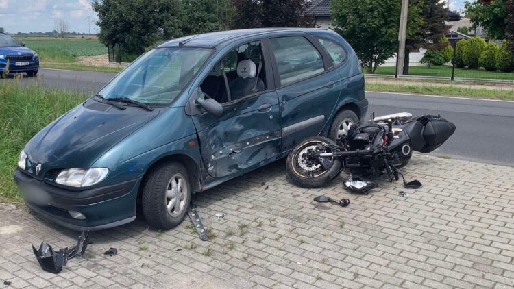 2 sierpnia w miejscowości Dąbrowa na ulicy Wrocławskiej doszło do zdarzenia drogowego. Jak wynika ze wstępnych ustaleń policjantów pracujących na miejscu zdarzenia, doszło tam do zderzenia samochodu osobowego marki Renault z motocyklem marki Kawasaki.
