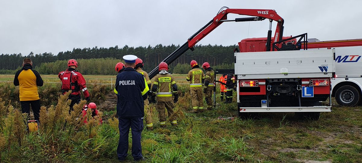 W sobotę, 6 września, dyżurny wieluńskiej komendy otrzymał zgłoszenie o zanurzonym samochodzie na terenie jednej z uprawnych działek w miejscowości Drobnice, w gminie Osjaków.