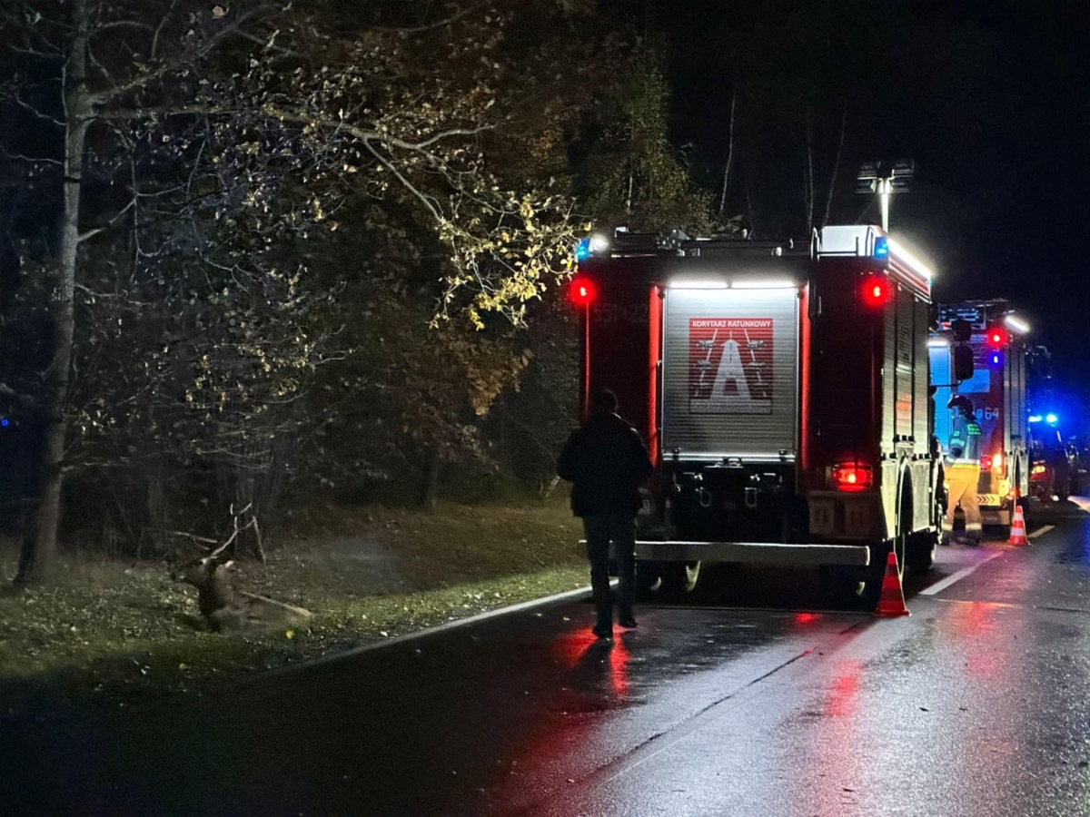 Około godziny 18:20 spokojną dotąd trasę przerwało dramatyczne zdarzenie: wprost pod jadącego citroena wbiegł jeleń. Kierujący autem 52-letni mężczyzna nie miał szans na uniknięcie zderzenia. Zwierzę pojawiło się nagle a sekundy zdecydowały o wszystkim. Siła uderzenia była tak duża, że kierowca z obrażeniami ciała trafił do szpitala.