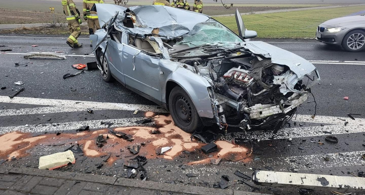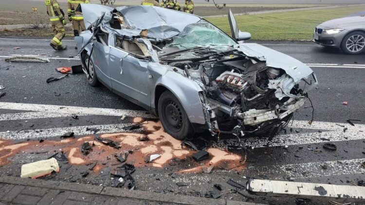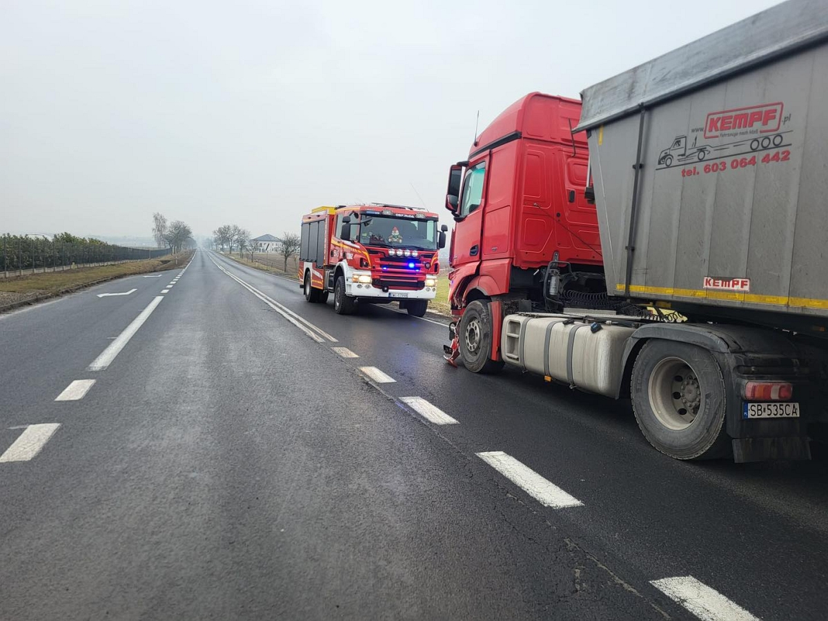 27 stycznia 2026 roku w miejscowości Rychłowice doszło do zdarzenia drogowego z udziałem trzech pojazdów. Jak wynika ze wstępnych ustaleń policjantów 20-latek kierujący audi uderzył w tył jadącej z przeciwnego kierunku naczepy samochodu ciężarowego mercedes, którego kierujący skręcał w lewo na pobliską stację benzynową.