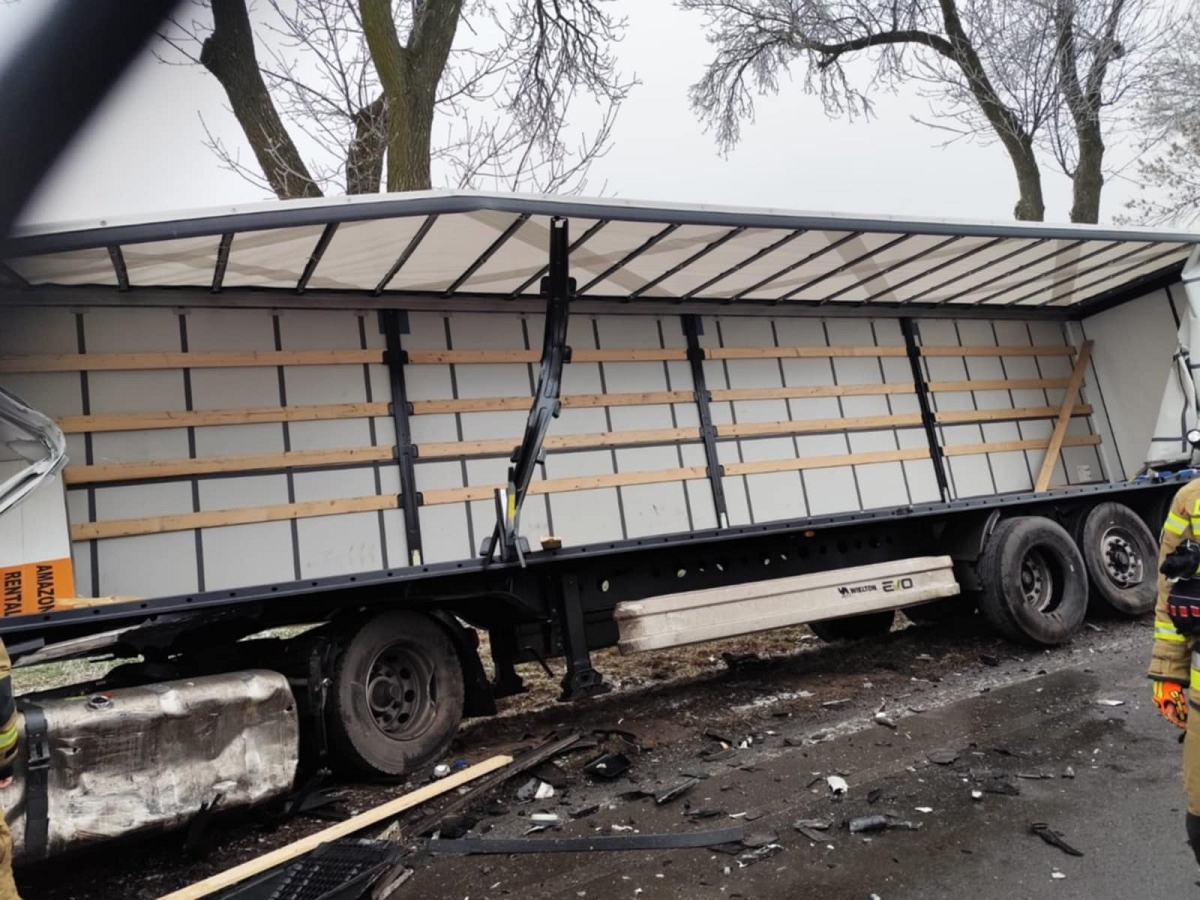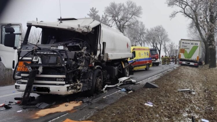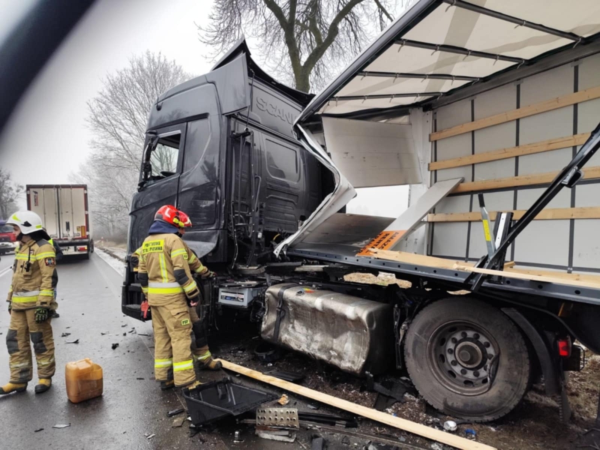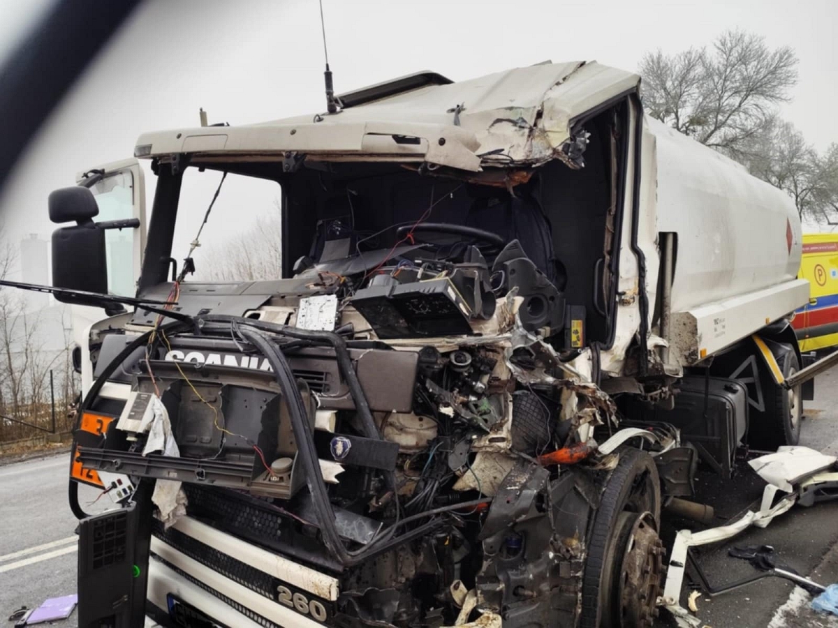 W miejscowości Kamionka nastąpiło zderzenie dwóch samochodów ciężarowych, jedna osoba jest poszkodowana – kierowca autocysterny.