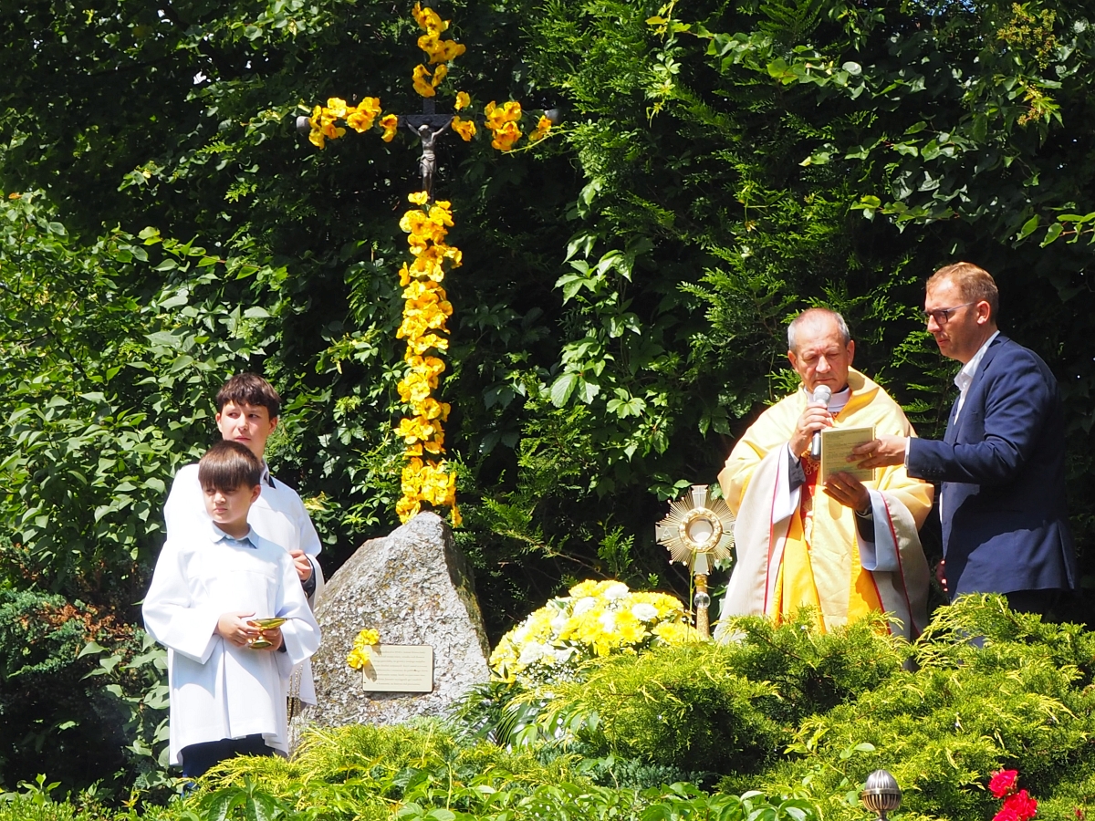 Procesję eucharystyczną poprzedziła koncelebrowana Msza Święta i słowa: „Zróbcie Mu miejsce, Pan idzie z nieba…” Słowo nawiązujące do Ewangelii wg św. Łukasza o uczniach zdążających do Emaus, uczniach, którzy poznali Jezusa przy łamaniu chleba, skierował do wiernych ks. Bogdan Blajer.