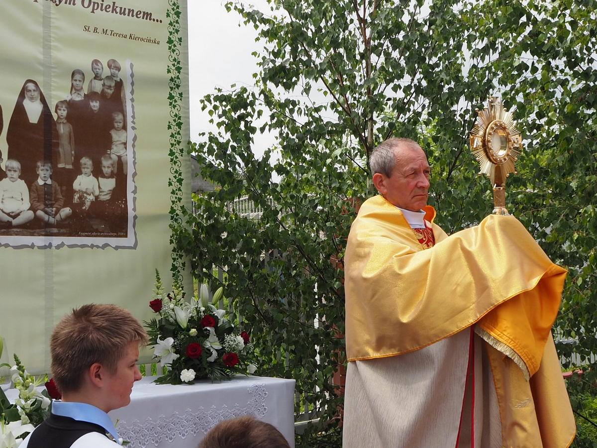 Przy ołtarzach związanych tematycznie z Matką Teresa Kierocińską celebrans przybliżył wiernym historię życia Matki Teresy, i przypomniał, że parafia św. Barbary modli się każdego 12 dnia miesiąca o jej rychłą beatyfikację. Uroczyste „Ciebie Boga wysławiamy” i błogosławieństwo Najświętszym Sakramentem na cztery strony świata przy czwartym ołtarzu zakończyło procesję i uroczystości Bożego Ciała w parafii św. Barbary.