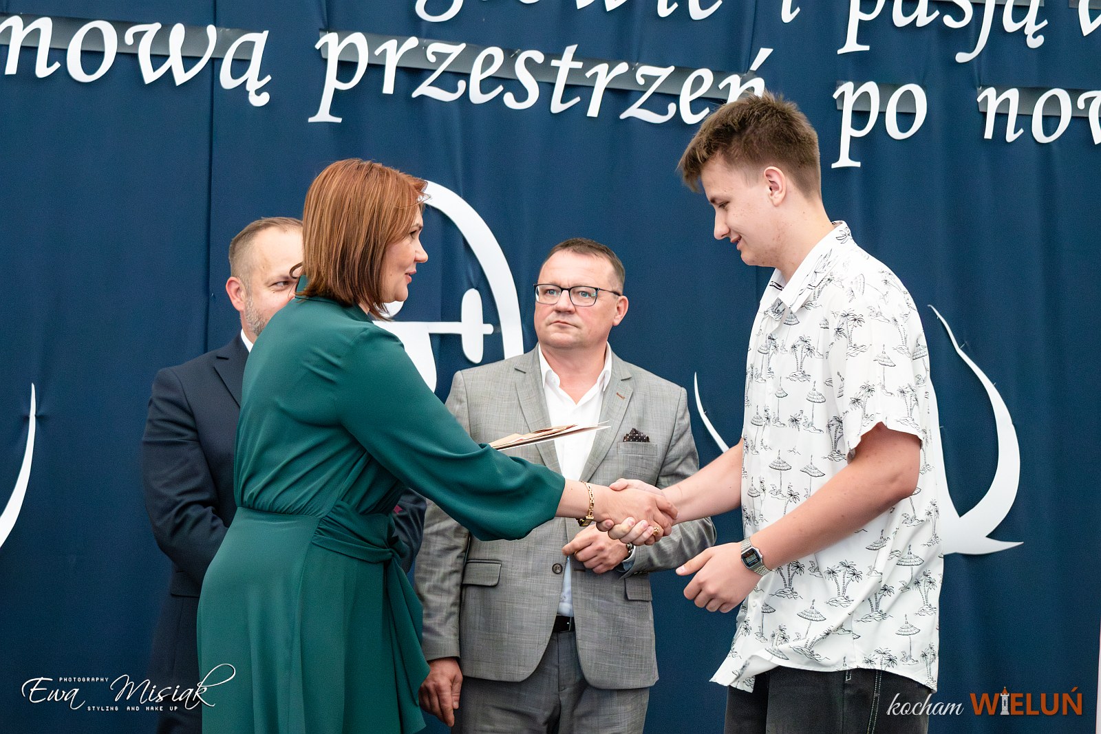 Następną część wydarzenia poprowadziła Bożena Krej, Naczelnik Wydziału Edukacji Starostwa Powiatowego w Wieluniu. W jej trakcie wręczono nagrody dla uczniów za szczególne osiągnięcia w roku szkolnym 2024/2025 oraz dla nauczycieli, których praca była inspiracją dla młodzieży.