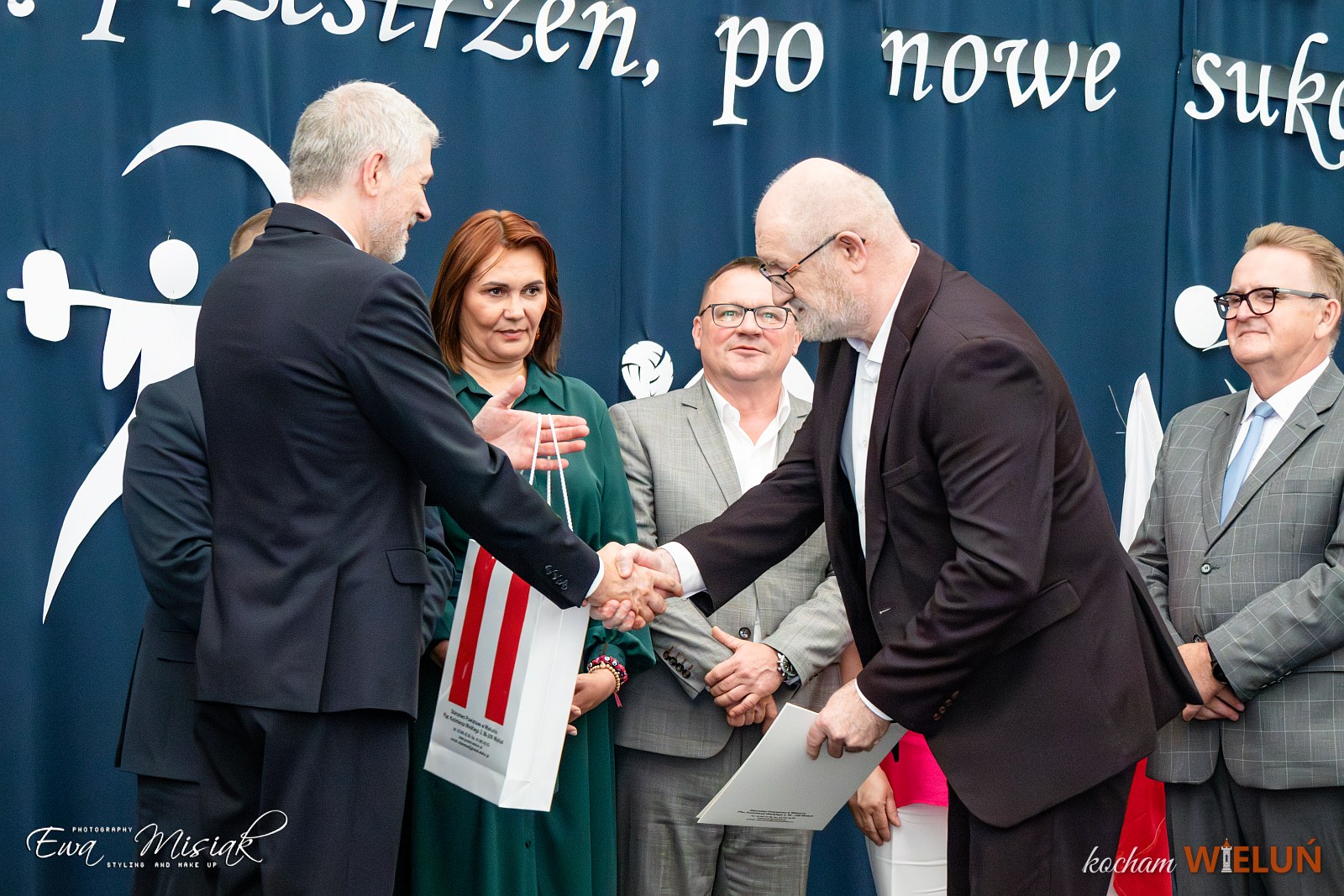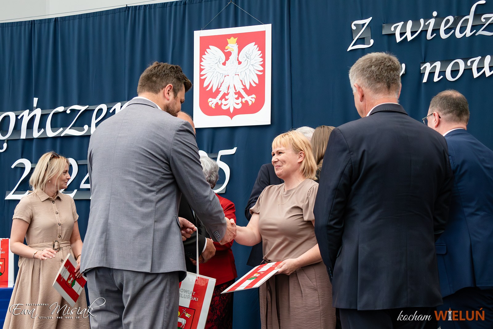 Następną część wydarzenia poprowadziła Bożena Krej, Naczelnik Wydziału Edukacji Starostwa Powiatowego w Wieluniu. W jej trakcie wręczono nagrody dla uczniów za szczególne osiągnięcia w roku szkolnym 2024/2025 oraz dla nauczycieli, których praca była inspiracją dla młodzieży.