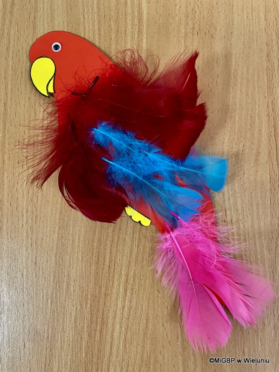 Po literackiej części warsztatów dzieci wzięły udział w zajęciach plastycznych, podczas których własnoręcznie wykonały barwne rajskie ptaki. Praca twórcza była nie tylko okazją do rozwinięcia wyobraźni i zdolności manualnych ale również do rozmów o tym, jak przyroda inspiruje nas każdego dnia i jak możemy się o nią troszczyć.