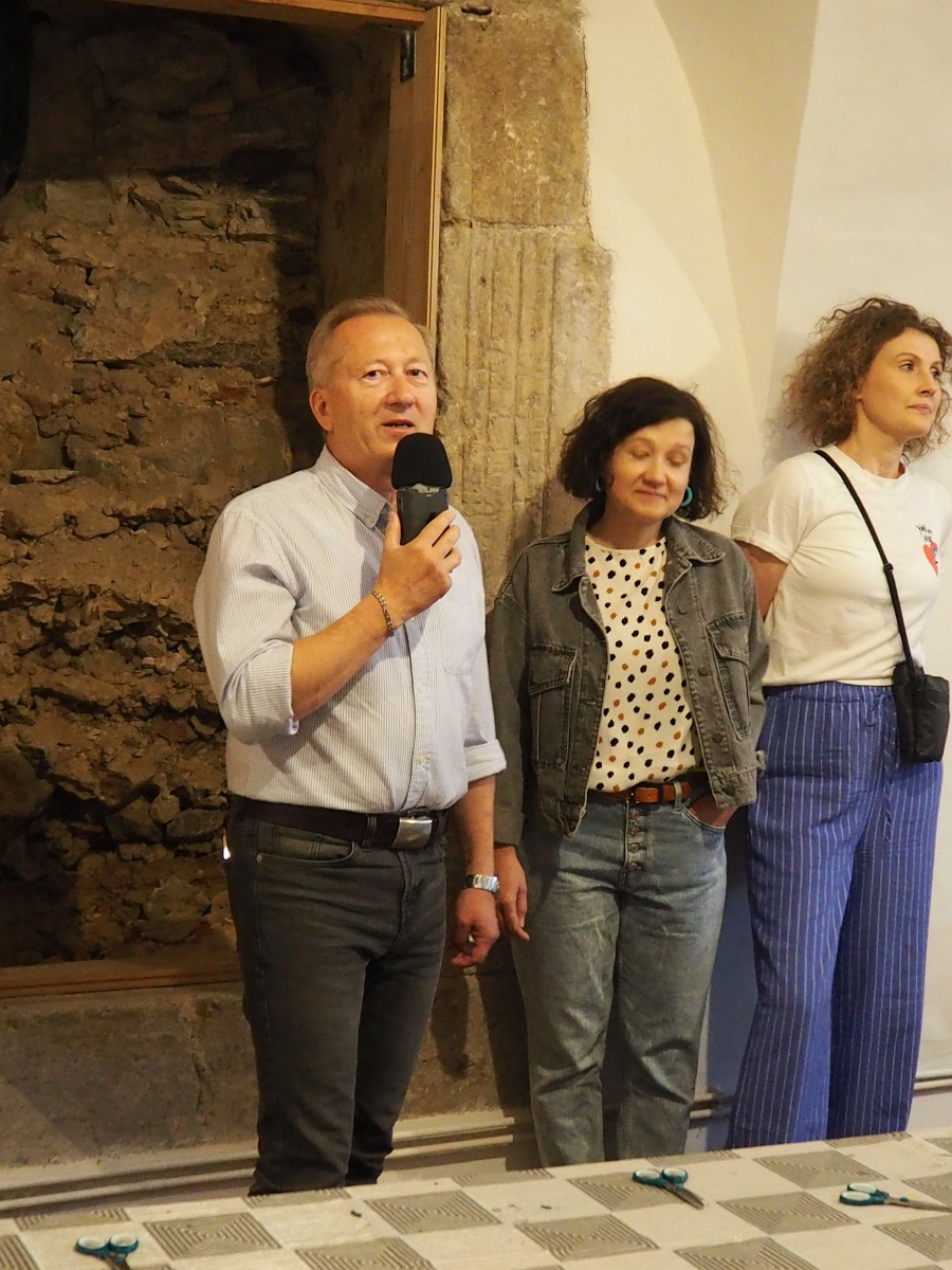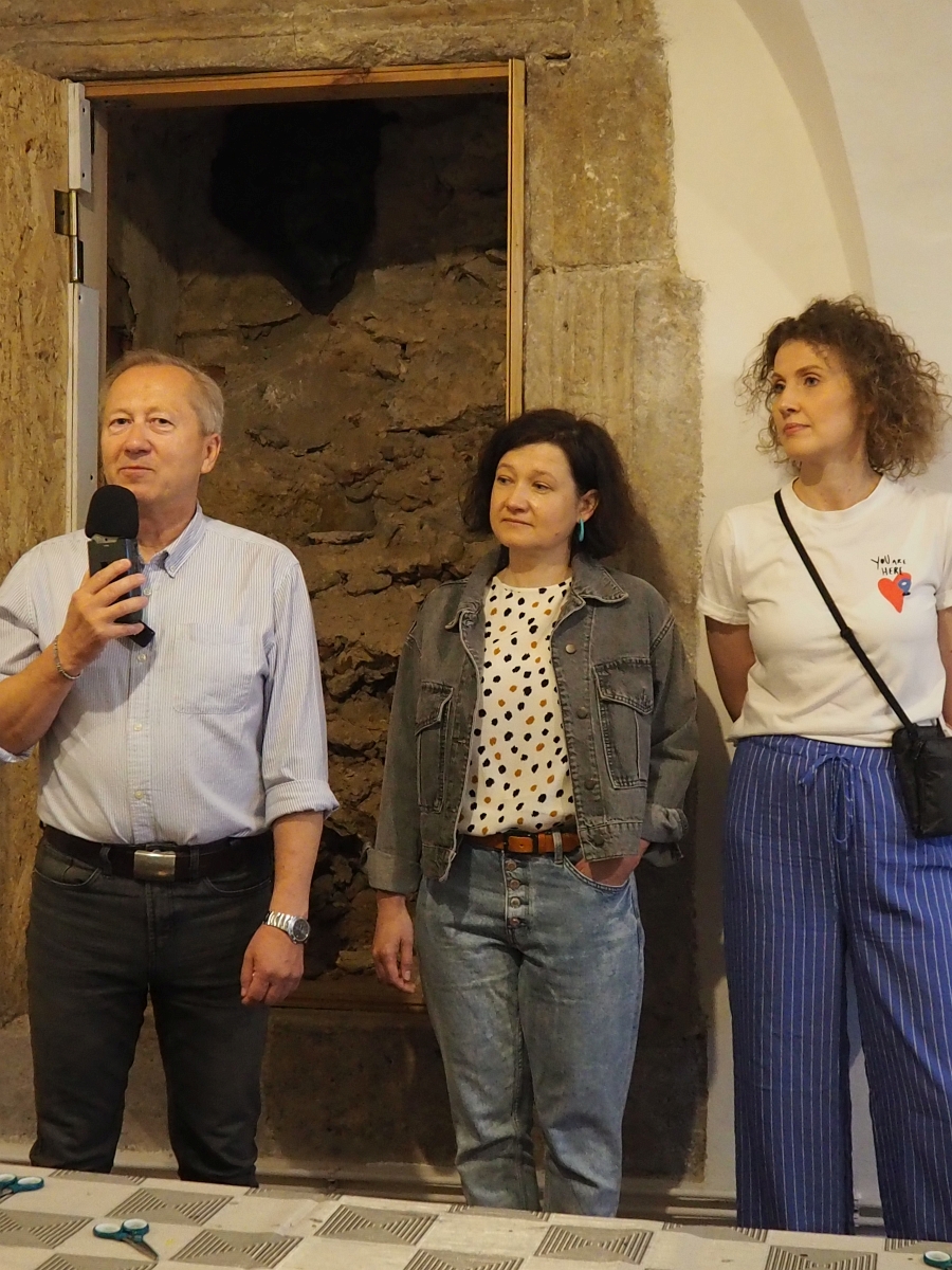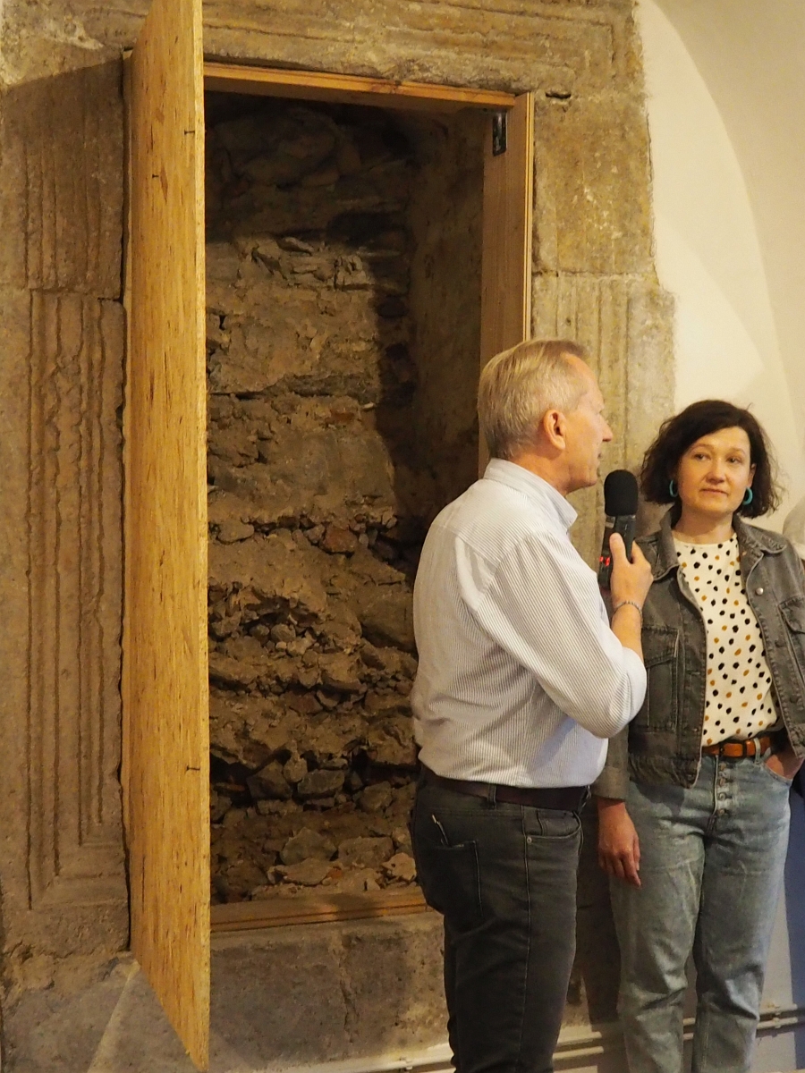 Odkryte 2 lata temu przez pracowników muzeum przejście między kościołem i klasztorem oraz polichromie w postaci wielobarwnych kwiatów czekają na zabiegi konserwatorskie. Przejście jest aktualnie zabezpieczone przez symboliczne drzwi. Przed wejściem do kościoła głos zabrał Jan Książek, Dyrektor MZW.