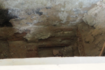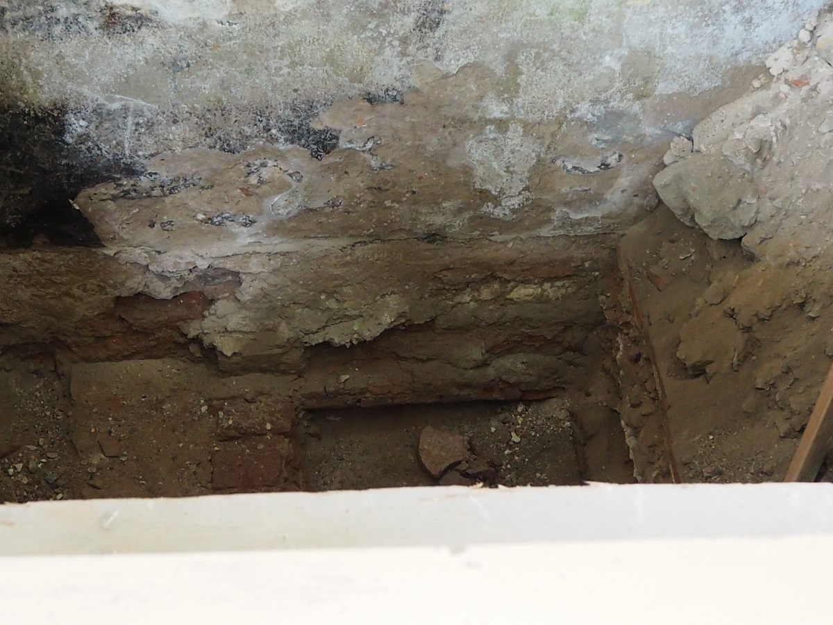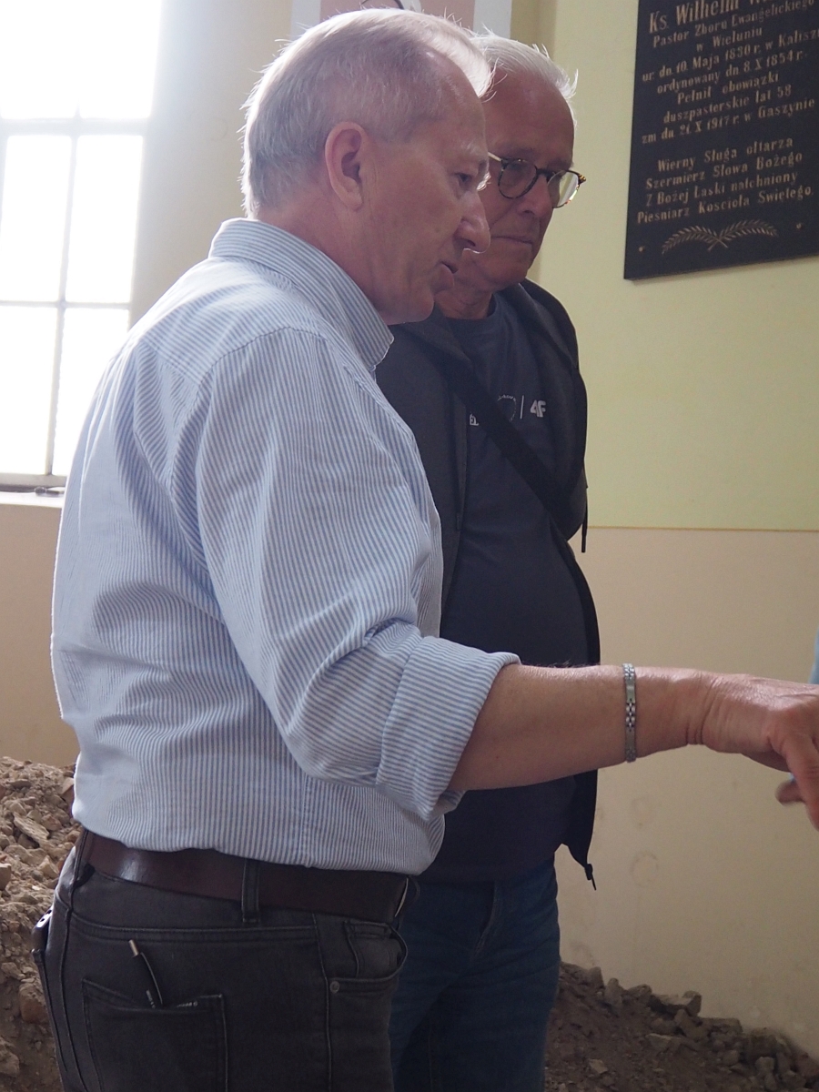 Uwagę uczestników spotkania przykuwały otwory na ścianach i dziura w podłodze. Dziury w ścianach to odwierty gdzie kiedyś były okna. Czekamy na odkrycie tych fragmentów ścian znajdujących się 3 m poniżej posadzki. Widoczna dziura to tylko 1,80 metra poniżej posadzki kościoła, co będzie 3 m poniżej? Co zostanie odkryte?. Zadanie jest współfinansowane z budżetu Samorządu Województwa Łódzkiego.