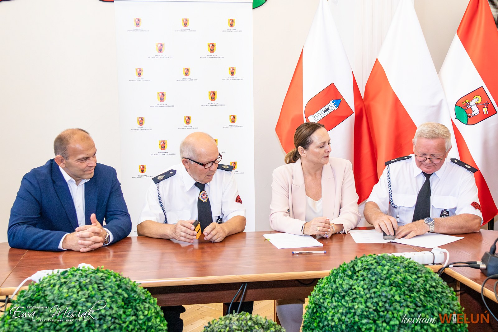 Uroczyste podpisanie umów z przedstawicielami jednostek odbyło się 13 sierpnia w Wieluniu. Dokumenty potwierdzające przyznanie dotacji wręczyła Marszałek Województwa Łódzkiego Joanna Skrzydlewska w asyście radnego sejmiku Macieja Sulgana. W spotkaniu, w imieniu nieobecnego Wiceprezesa Związku Ochotniczych Straży Pożarnych RP Adama Nowaka uczestniczył Jakub Wejman, Burmistrz Wielunia Paweł Okrasa i Wiceburmistrz Joanna Skotnicka-Fiuk.