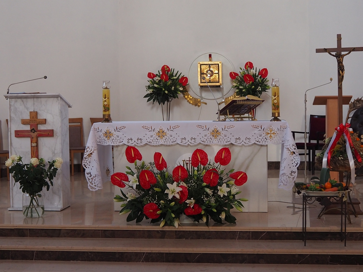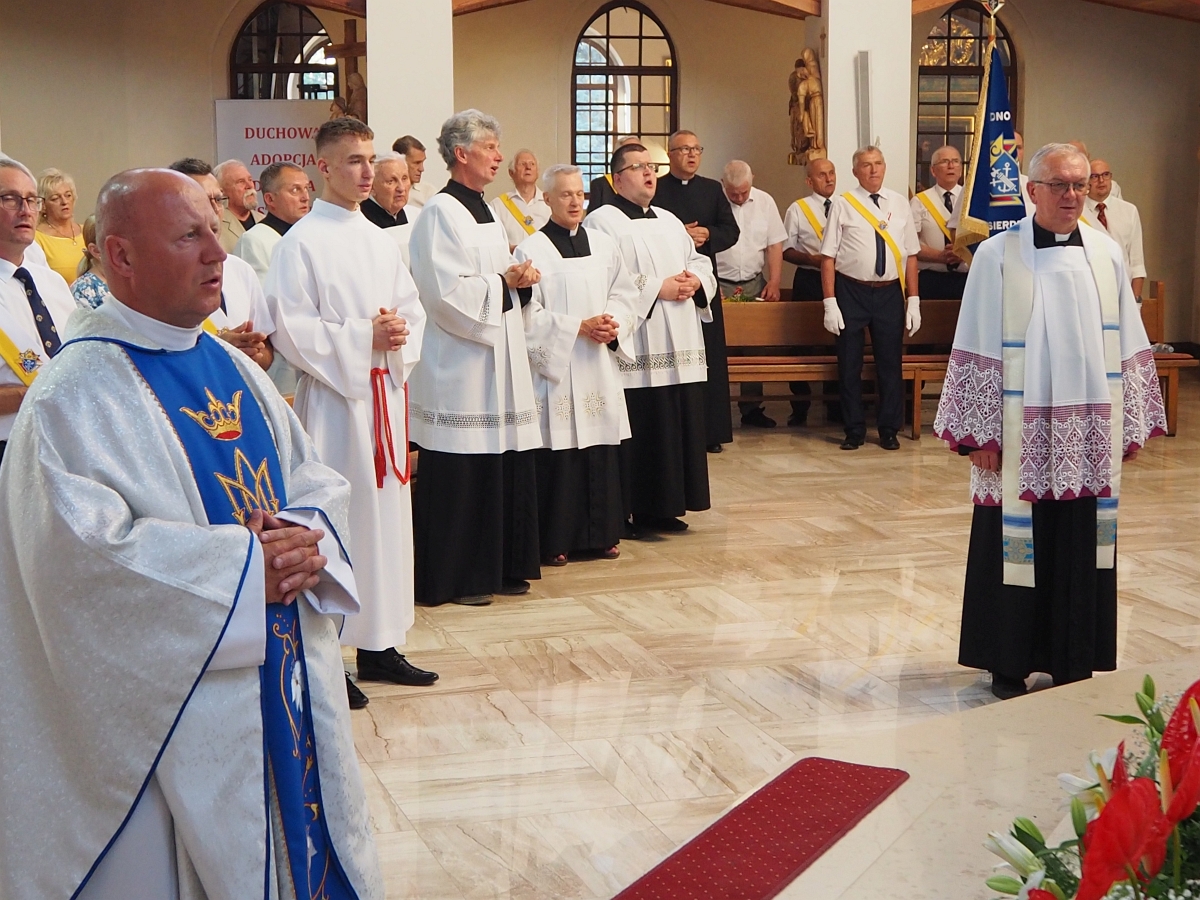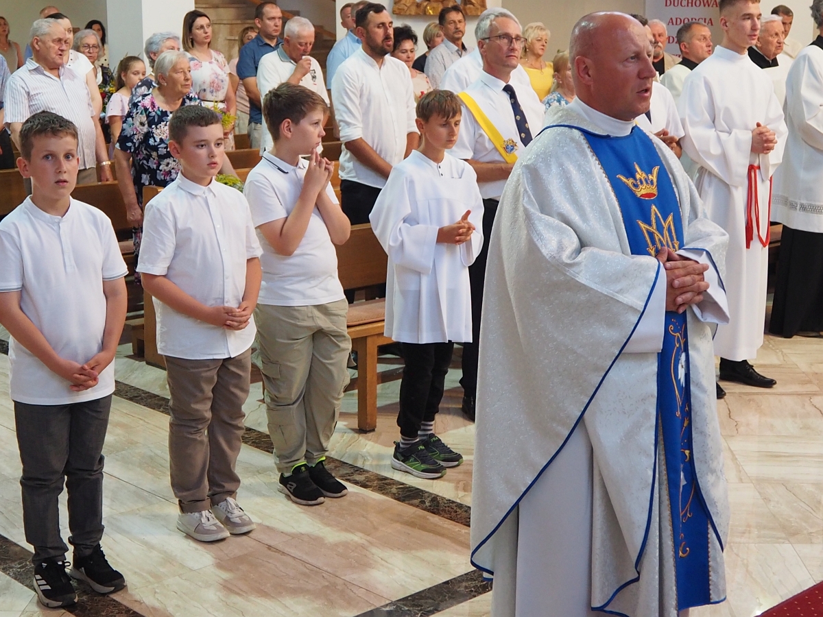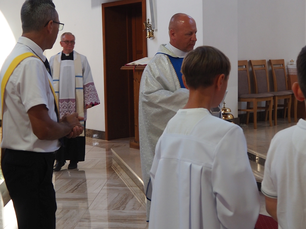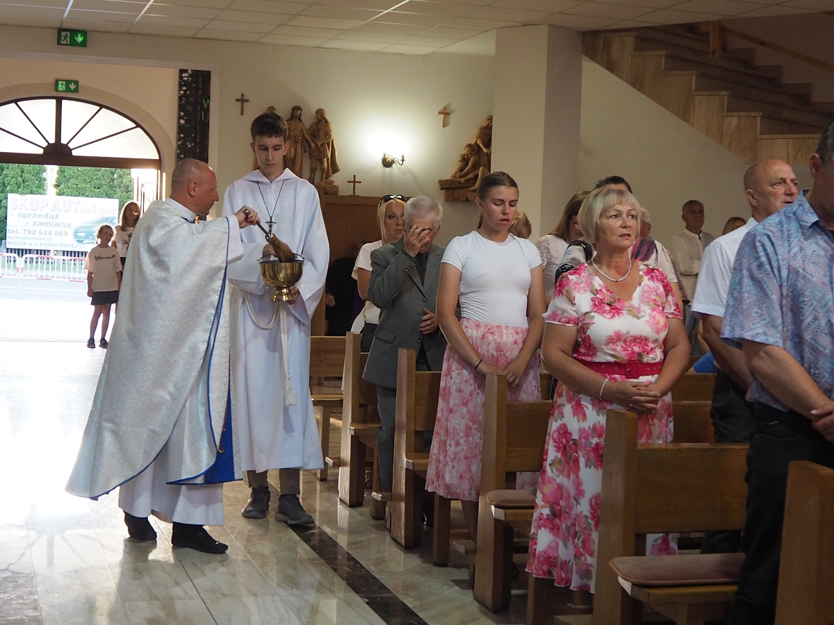 Po uroczystym „Ciebie Boga wysławiamy” nastąpiło poświęcenie bukietów ziół i kwiatów, wpisane od wieków w polskie obchody uroczystości Wniebowzięcia NMP. Przyniesione kwiaty i zioła symbolizowały naręcza dobrych uczynków, które winniśmy nieść Bogu przez Maryję.