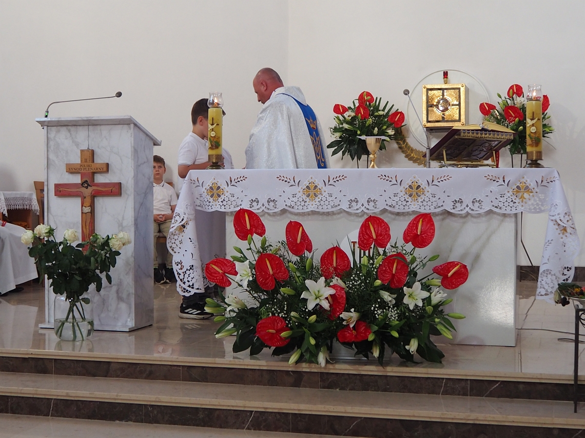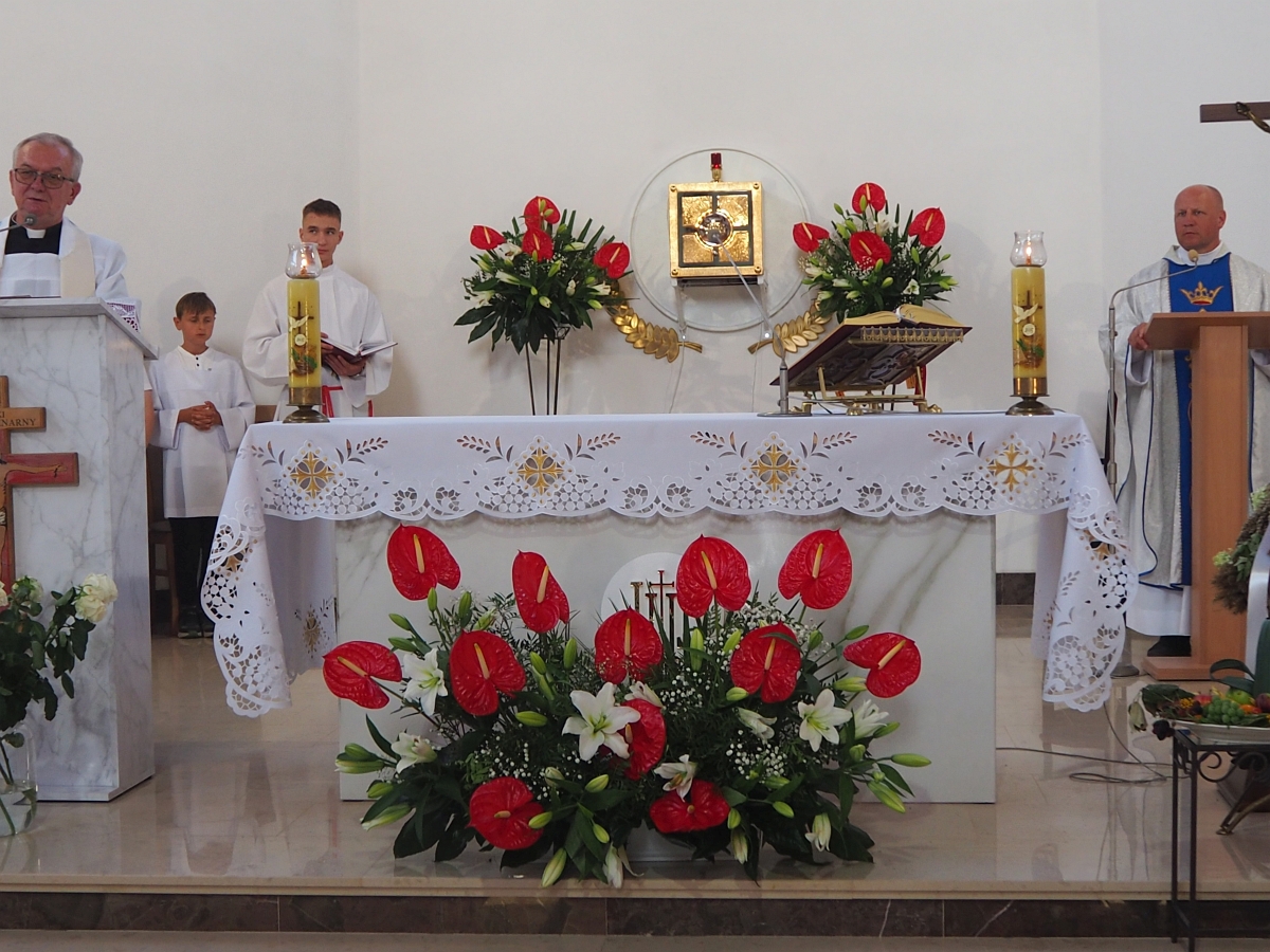 Po uroczystym „Ciebie Boga wysławiamy” nastąpiło poświęcenie bukietów ziół i kwiatów, wpisane od wieków w polskie obchody uroczystości Wniebowzięcia NMP. Przyniesione kwiaty i zioła symbolizowały naręcza dobrych uczynków, które winniśmy nieść Bogu przez Maryję.