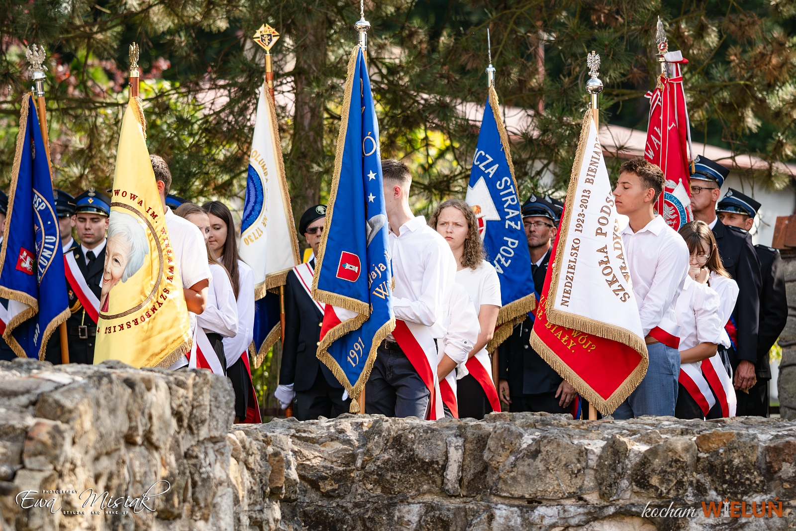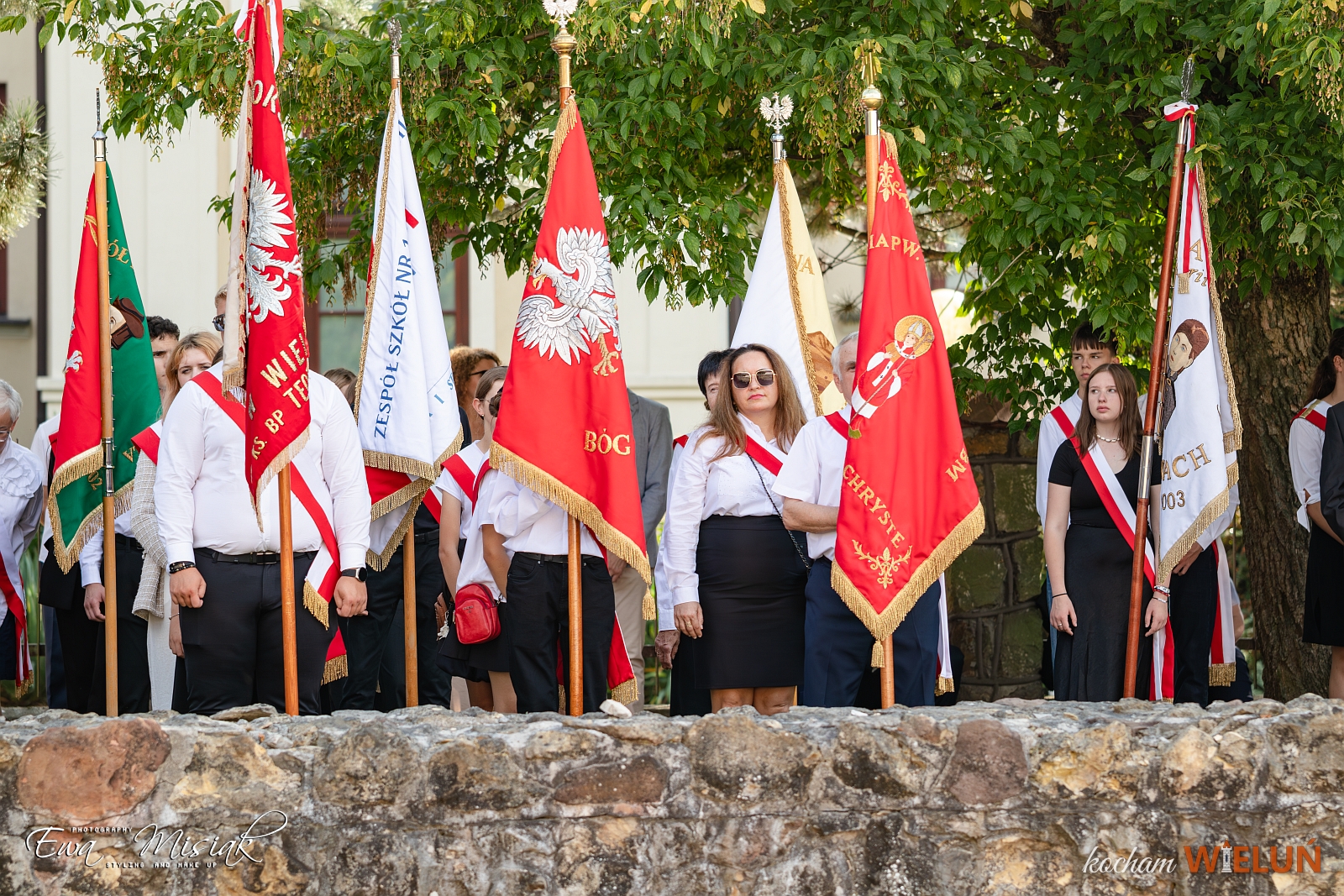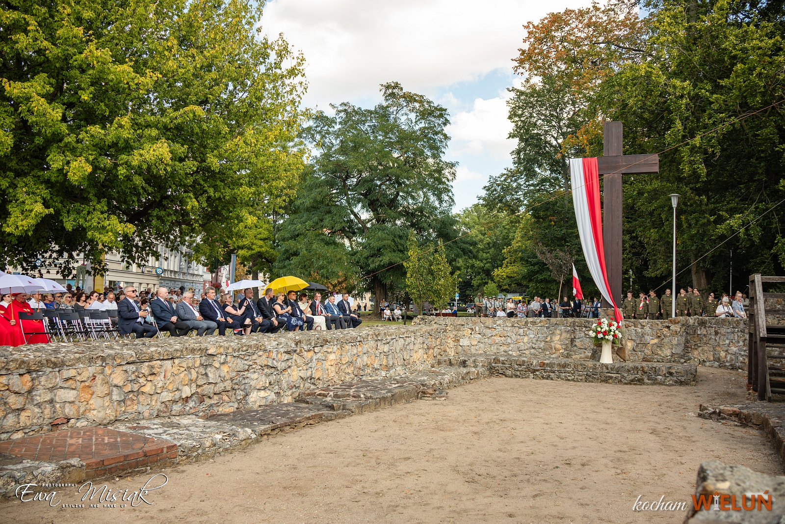 Swoją obecnością Mszę Świętą zaszczycili przedstawiciele władz wszystkich szczebli, dyrektorzy instytucji kulturalnych i oświatowych, przedstawiciele służb mundurowych, liczne poczty sztandarowe, harcerze, mieszkańcy oraz młodzież szkolna. Msza święta koncelebrowana na odrestaurowanych fundamentach wieluńskiej fary była jednym z kilku wydarzeń w zw. z obchodami 86. rocznicy wybuchu II wojny światowej w Wieluniu. Wcześniej, o godz. 4:00, odbyły się uroczystości na pl. Kazimierza Wielkiego (pisaliśmy o tym: tutaj) oraz później, z tej okazji, Wieluń odwiedził Prezydent RP Karol Nawrocki (o wizycie Prezydenta RP pisaliśmy: tutaj).