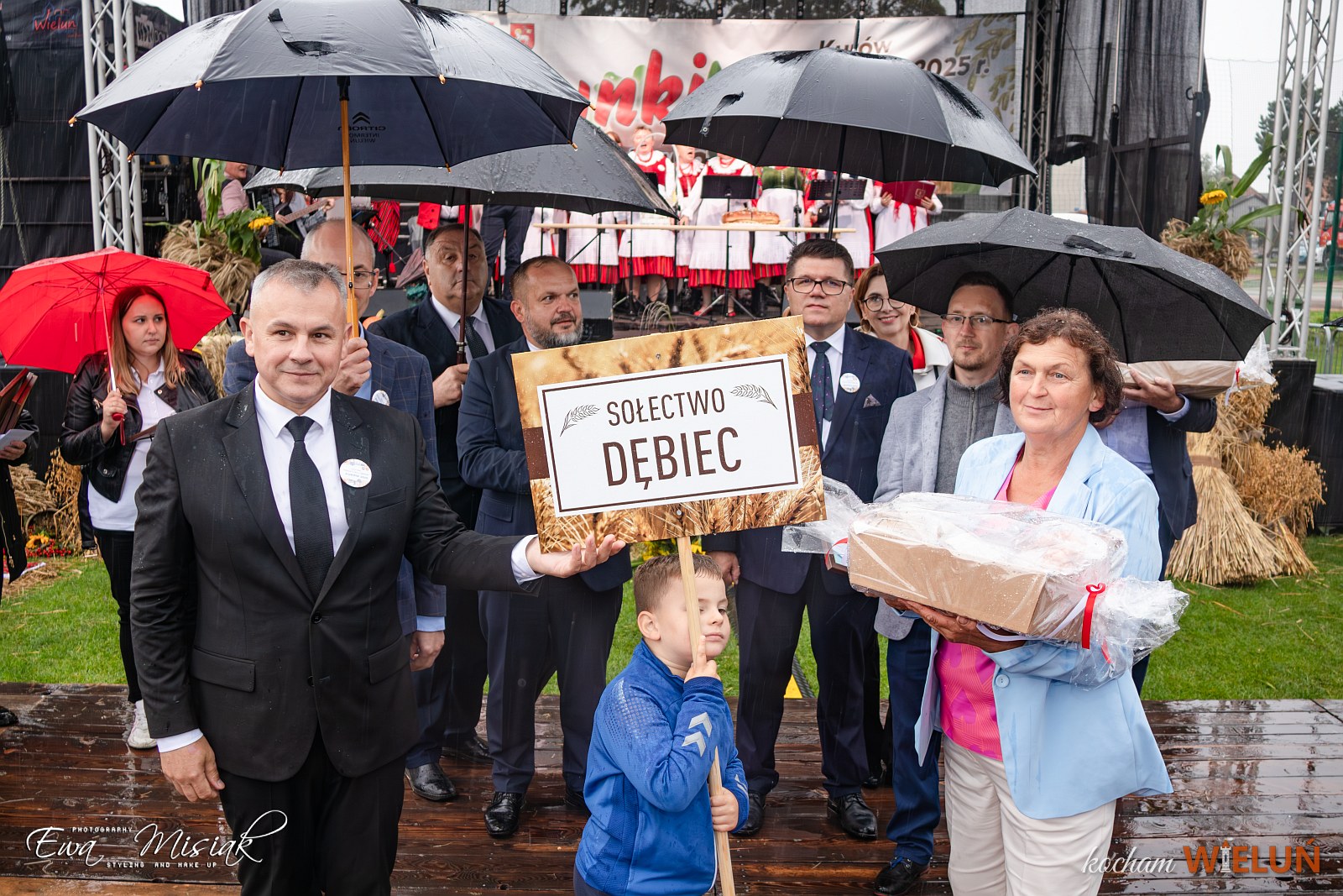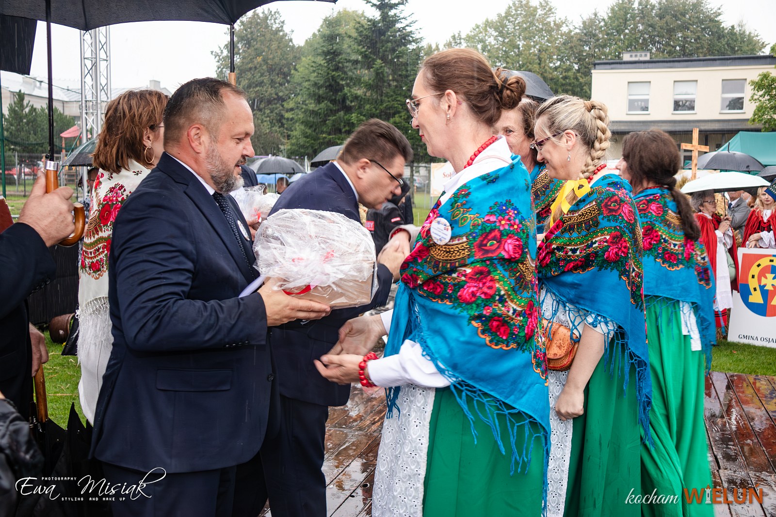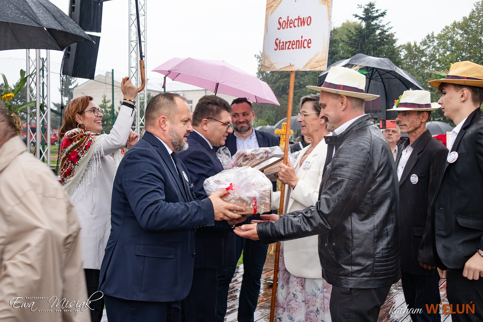 Po Eucharystii nastąpiła część obrzędowa prowadzona przez Zespół Śpiewaczy „Z dusy śpiywane”, który przeniósł uczestników w klimat dawnych wsi, gdzie dożynki były jednym z najważniejszych momentów w roku. Tradycyjny ceremoniał czyli dzielenie chleba i podziękowania za przepiękne wieńce przypomniał, że chleb to nie tylko pokarm, lecz symbol pracy i dostatku. Starostowie dożynek przekazali bochen z tegorocznych zbiorów gospodarzom uroczystości: Staroście Powiatu Wieluńskiego Maciejowi Brysiowi i Burmistrzowi Wielunia Pawłowi Okrasie, którzy następnie podzielili się nim z mieszkańcami i gośćmi w geście jedności i wzajemnej wdzięczności.