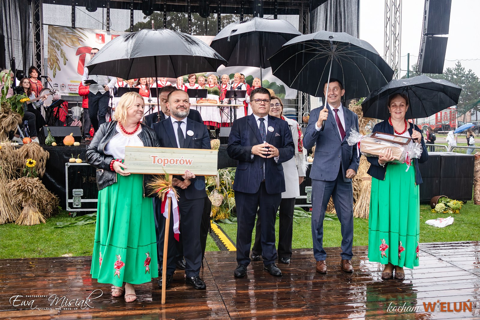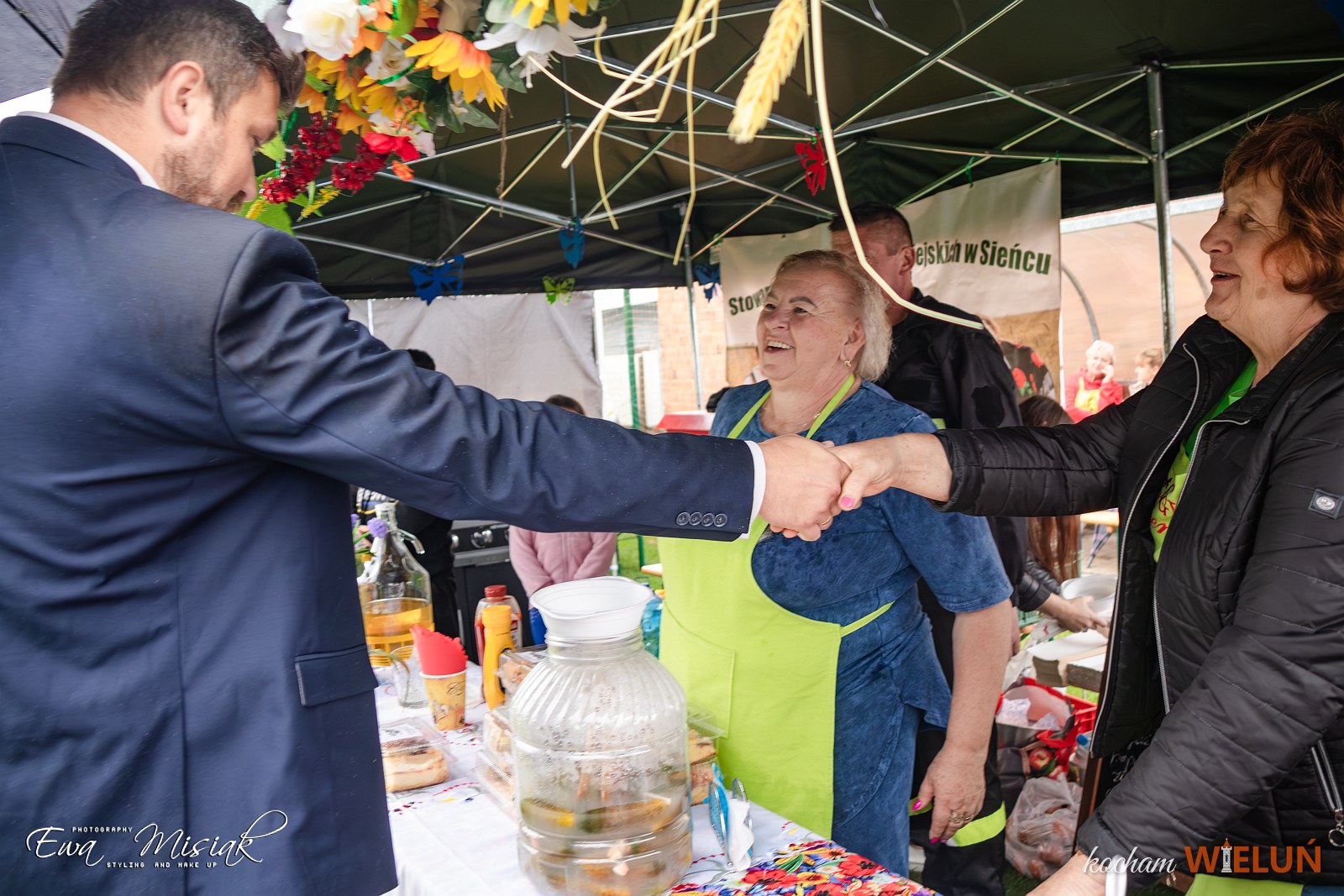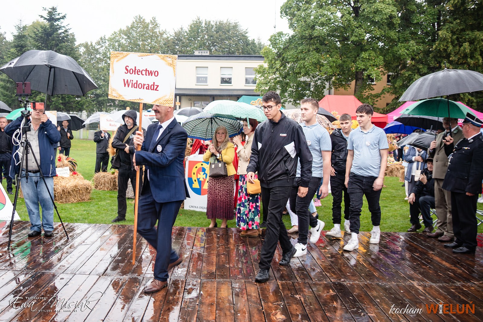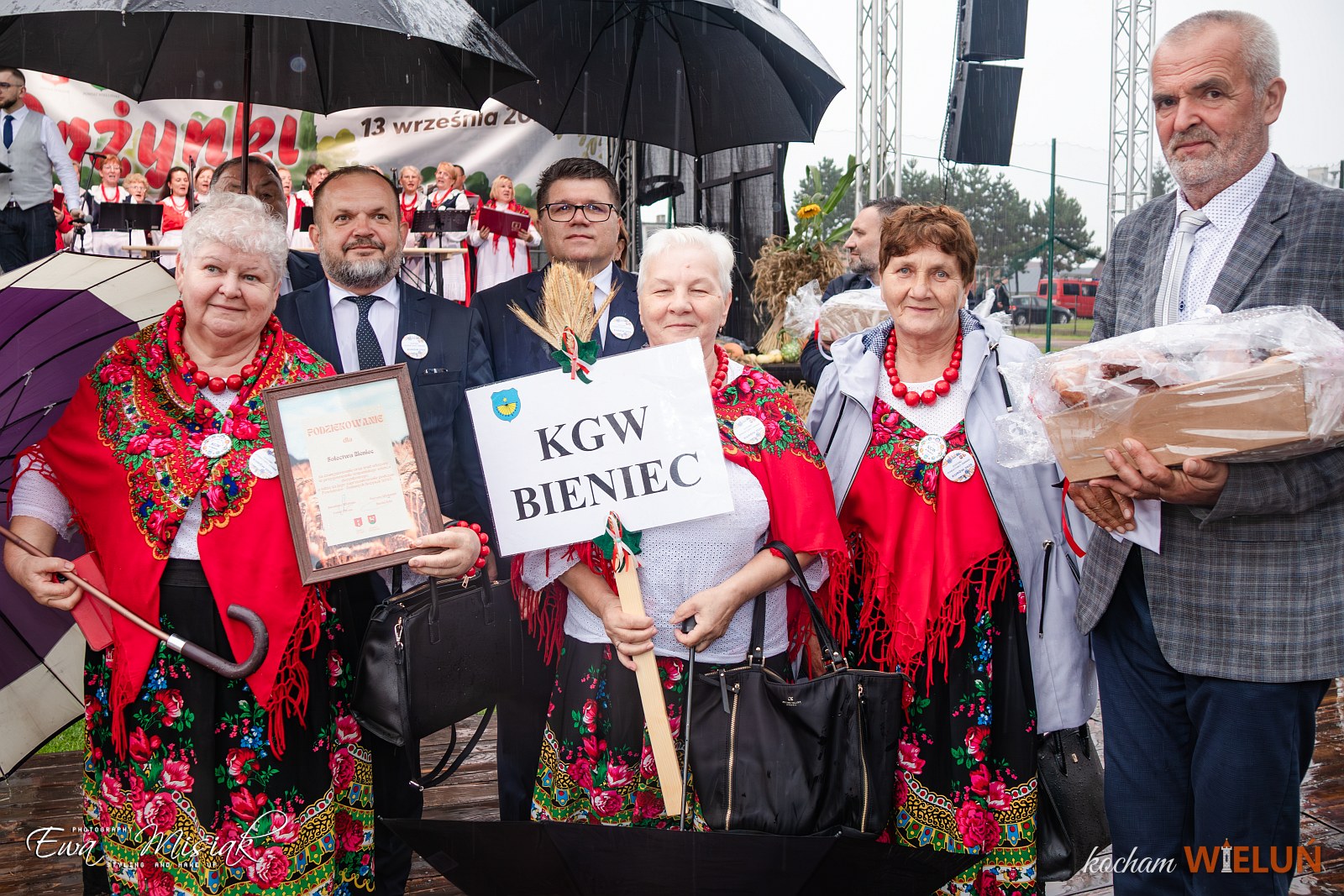 Po Eucharystii nastąpiła część obrzędowa prowadzona przez Zespół Śpiewaczy „Z dusy śpiywane”, który przeniósł uczestników w klimat dawnych wsi, gdzie dożynki były jednym z najważniejszych momentów w roku. Tradycyjny ceremoniał czyli dzielenie chleba i podziękowania za przepiękne wieńce przypomniał, że chleb to nie tylko pokarm, lecz symbol pracy i dostatku. Starostowie dożynek przekazali bochen z tegorocznych zbiorów gospodarzom uroczystości: Staroście Powiatu Wieluńskiego Maciejowi Brysiowi i Burmistrzowi Wielunia Pawłowi Okrasie, którzy następnie podzielili się nim z mieszkańcami i gośćmi w geście jedności i wzajemnej wdzięczności.