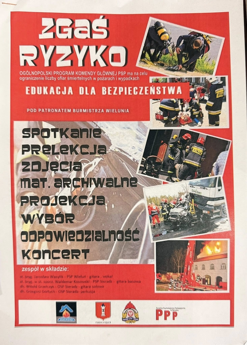 Wydarzenie zostało zorganizowane z inicjatywy Państwowej Straży Pożarnej w ramach ogólnopolskiego programu „Zgaś Ryzyko” – edukacja dla bezpieczeństwa. Wieluńskie wydarzenie odbyło się pod patronatem Burmistrza Wielunia. Było to połączenie koncertu, prelekcji i prezentacji zdjęć z prawdziwych akcji ratowniczych, które poruszyło zarówno serca jak i wyobraźnię młodzieży.