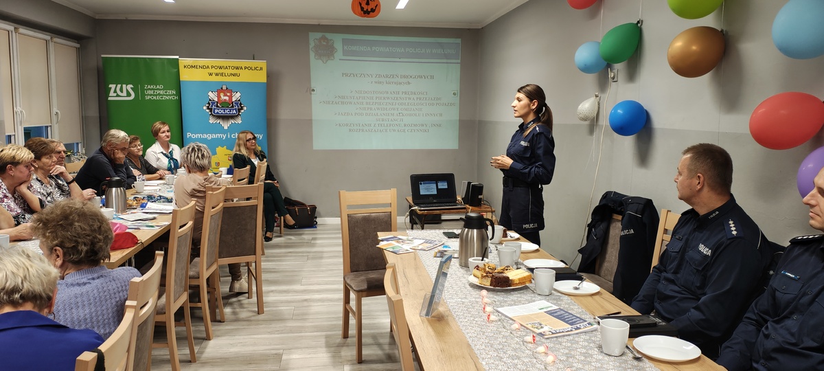 Spotkanie poświęcone było bezpieczeństwu seniorów, zarówno w codziennym życiu jak i na drogach. Policjanci przedstawili aktualny stan bezpieczeństwa i zwrócili uwagę na szczególne zagrożenia, jakie dotyczą niechronionych uczestników ruchu – pieszych i rowerzystów.