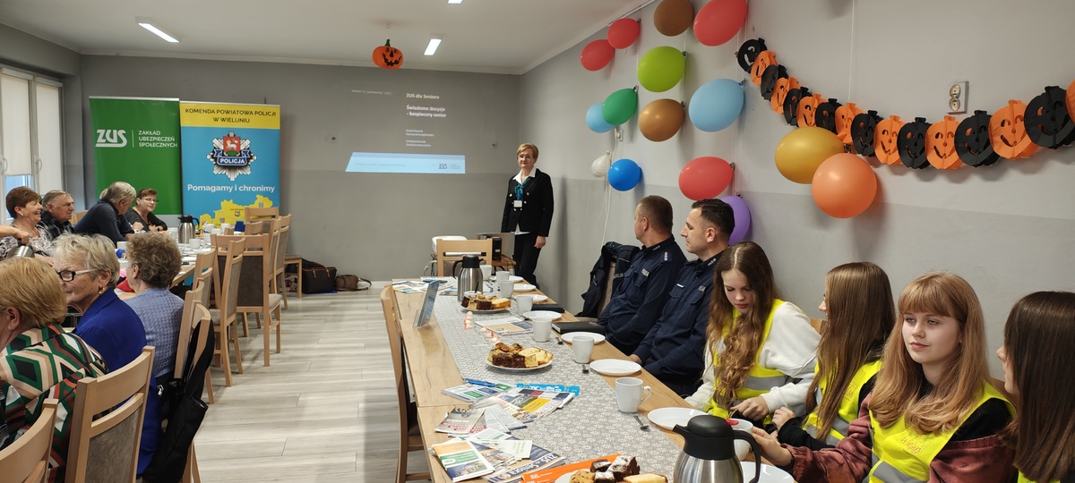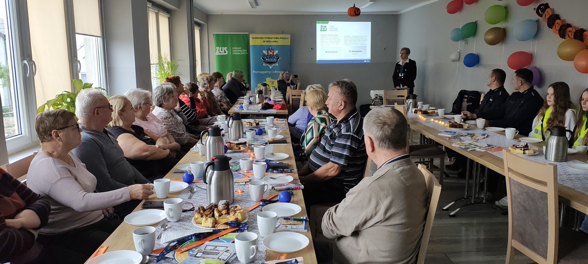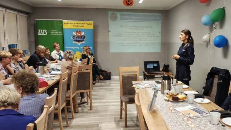Na samym początku wieluńscy mundurowi wraz z przedstawicielami Rejonowego Banku Spółdzielczego w Lututowie oddział w Wieluniu wskazali najczęściej występujące zagrożenia z jakimi mogą spotkać się seniorzy w życiu codziennym. Omówiono mechanizmy działania sprawców przestępstw wyłudzających pieniądze m.in. „na policjanta”, „na pracownika banku”, czy też „na blika”. Nie zabrakło informacji, w jaki sposób postępować aby nie stać się ofiarą tego typu przestępstw oraz jak się się zachować w sytuacji, gdy telefonuje nieznajomy.