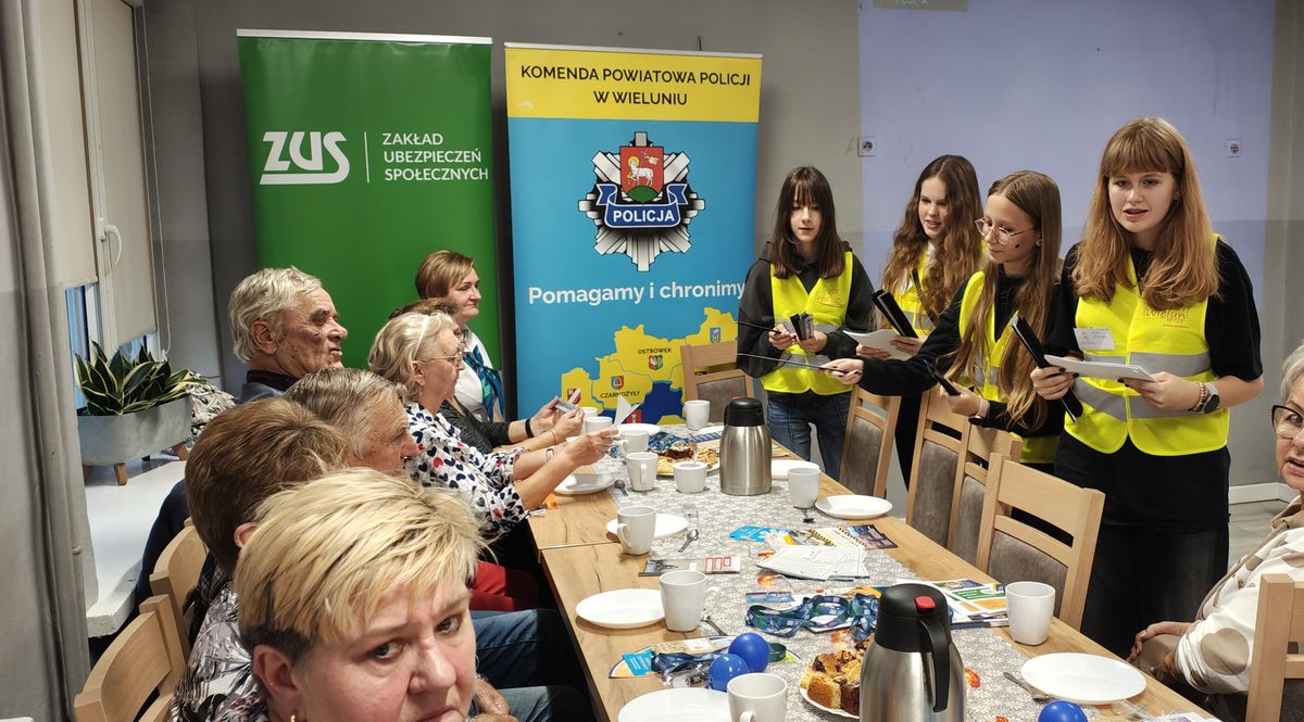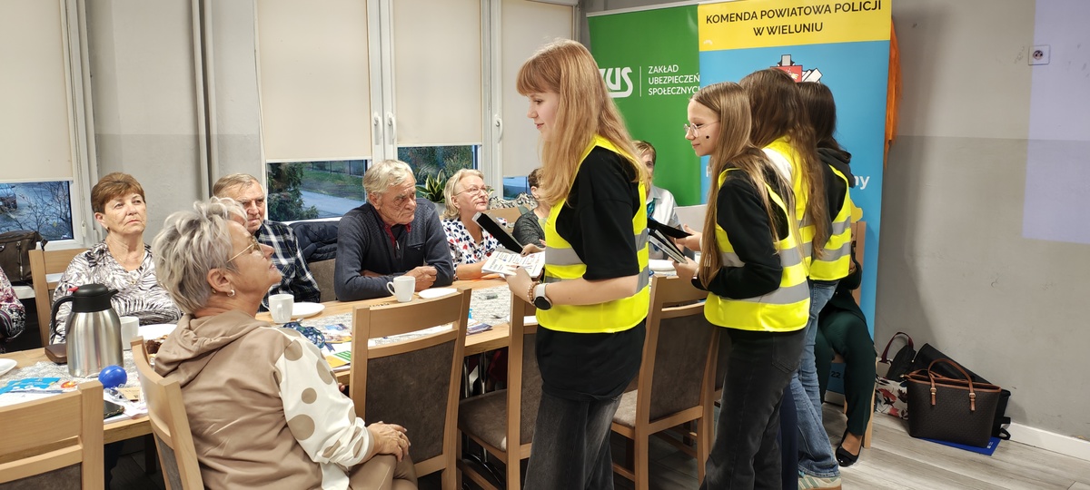 Dla wzmocnienia przekazu uczniowie ze Szkoły Podstawowej numer 4 w Wieluniu wręczyli seniorom elementy odblaskowe oraz przygotowane ulotki dotyczące kwestii związanych z bezpieczeństwem na drogach. Przygotowali również wystąpienie, w którym podkreślali, jak ważne jest przestrzeganie przepisów ruchu drogowego, dbanie o widoczność na drodze zwracając szczególną uwagę na bezpieczeństwo pieszych.