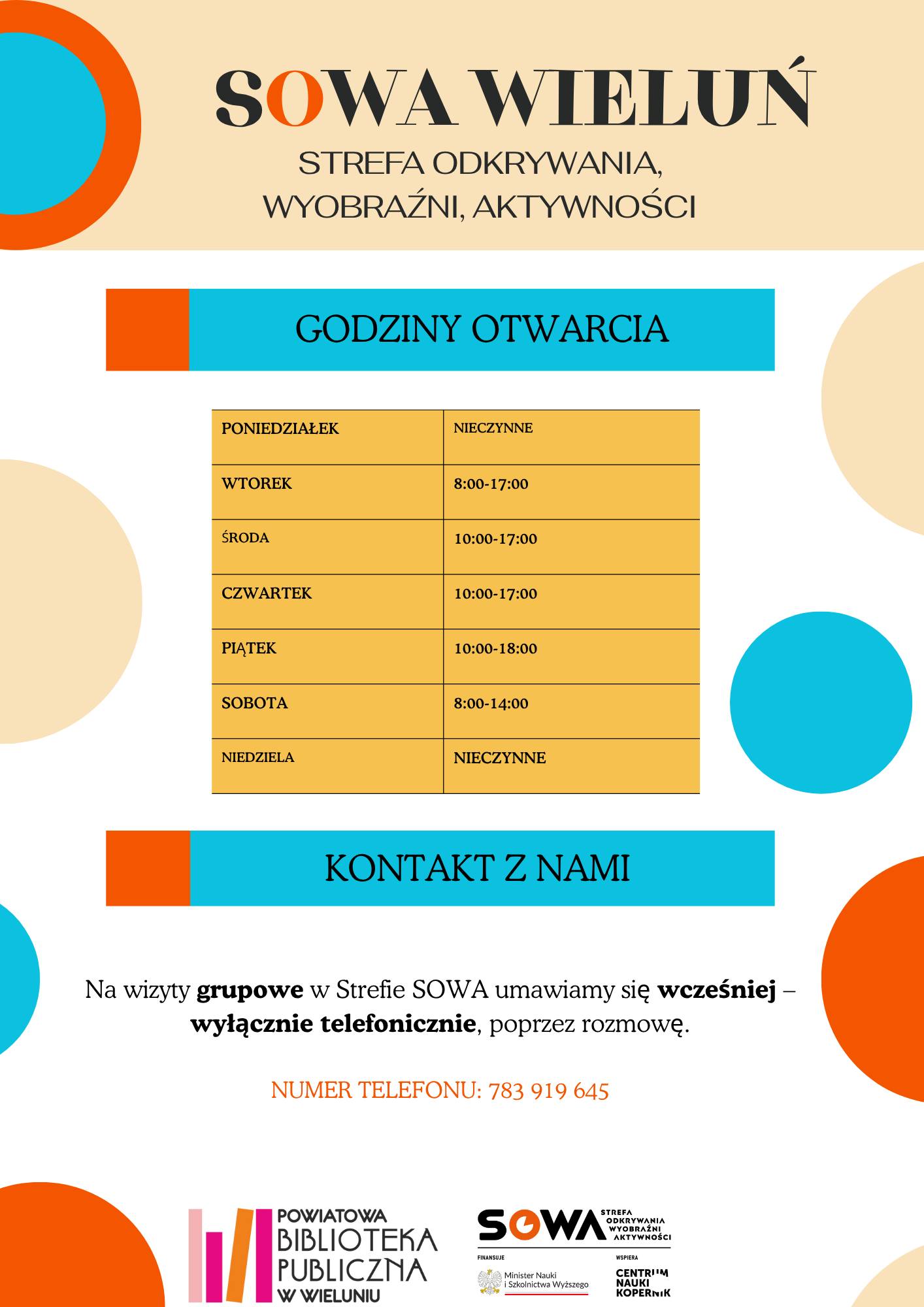Godziny otwarcia Centrum Nauki SOWA w Wieluniu: