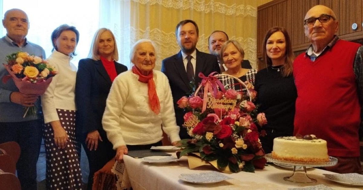 Cieszymy się, że mogliśmy wspólnie uczcić tę piękną rocznicę. Jeszcze raz składamy Pani Katarzynie najserdeczniejsze gratulacje i życzenia dalszych lat w zdrowiu i spokoju.