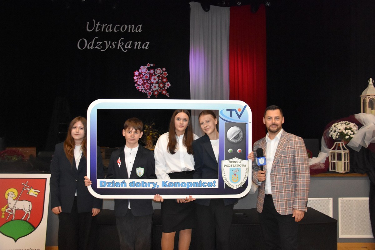 Ich praca to jednak nie tylko wizyty w telewizyjnych studiach. Ważnym wyzwaniem i zaszczytem był udział w Powiatowych Obchodach Święta Niepodległości, które odbyły się w Konopnicy. Młodzi reporterzy przygotowali sondę uliczną, w której zapytali mieszkańców o wrażenia z uroczystości. Dzięki temu mogli uchwycić emocje towarzyszące temu wyjątkowemu dniu i pokazać go z perspektywy lokalnej społeczności.
