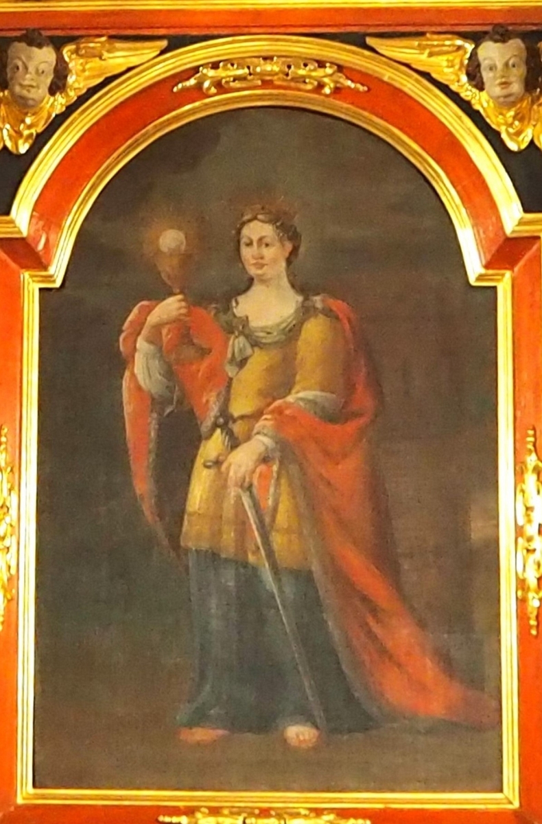 Taki jej wizerunek widnieje w waszym szesnastowiecznym kościółku pod jej wezwaniem. Dziś wasza Patronka uczy, że należy dochowywać obietnic złożonych Bogu i konsekwentnie trwać przy Chrystusie, nawet wbrew opinii otoczenia, bo tylko wtedy można będzie powiedzieć o sobie, że jestem prawdziwie Jego uczniem.