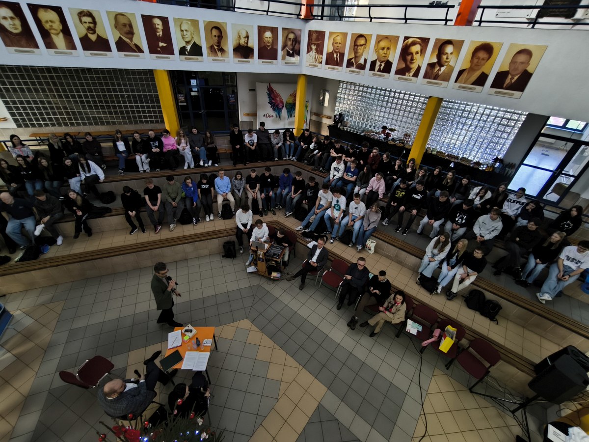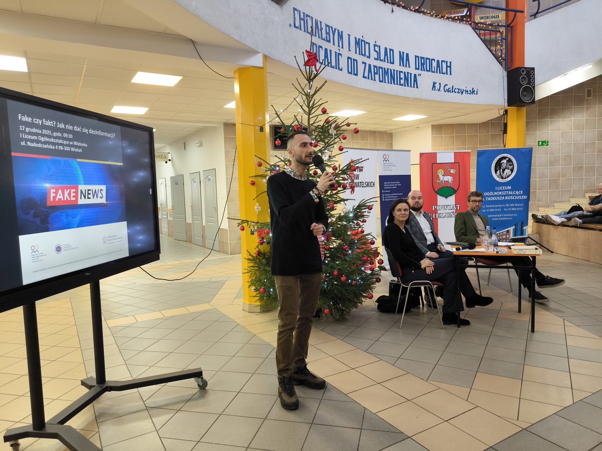 Wydarzenie poświęcono jednemu z największych wyzwań współczesnego świata czyli dezinformacji. Szkolna przestrzeń zamieniła się w forum rozmowy o tym, jak w rzeczywistości zdominowanej przez media społecznościowe odróżniać prawdę od manipulacji.
