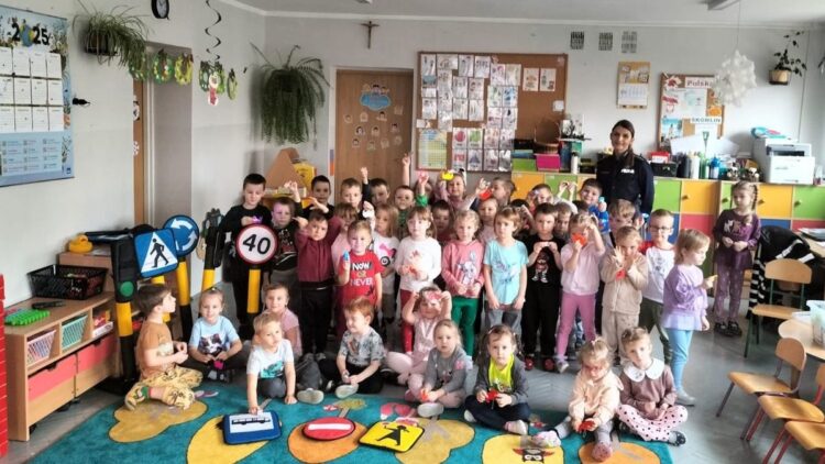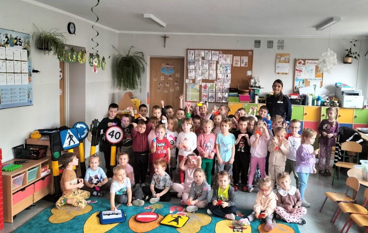 Spotkanie miało nie tylko charakter edukacyjny, ale również wychowawczy. Policjantka podkreślała, że dbanie o bezpieczeństwo to odpowiedzialność każdego człowieka, niezależnie od wieku, a dobre nawyki warto kształtować już od najmłodszych lat. Na zakończenie wizyty każde dziecko otrzymało świecący breloczek, który ma przypominać o zasadach bezpieczeństwa i zachęcać do noszenia odblasków każdego dnia.