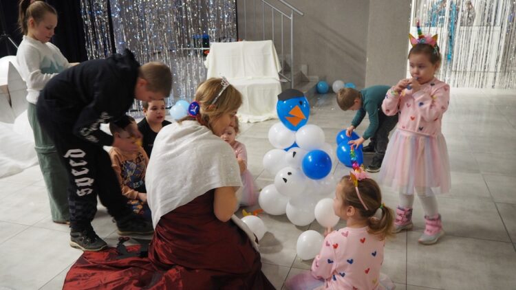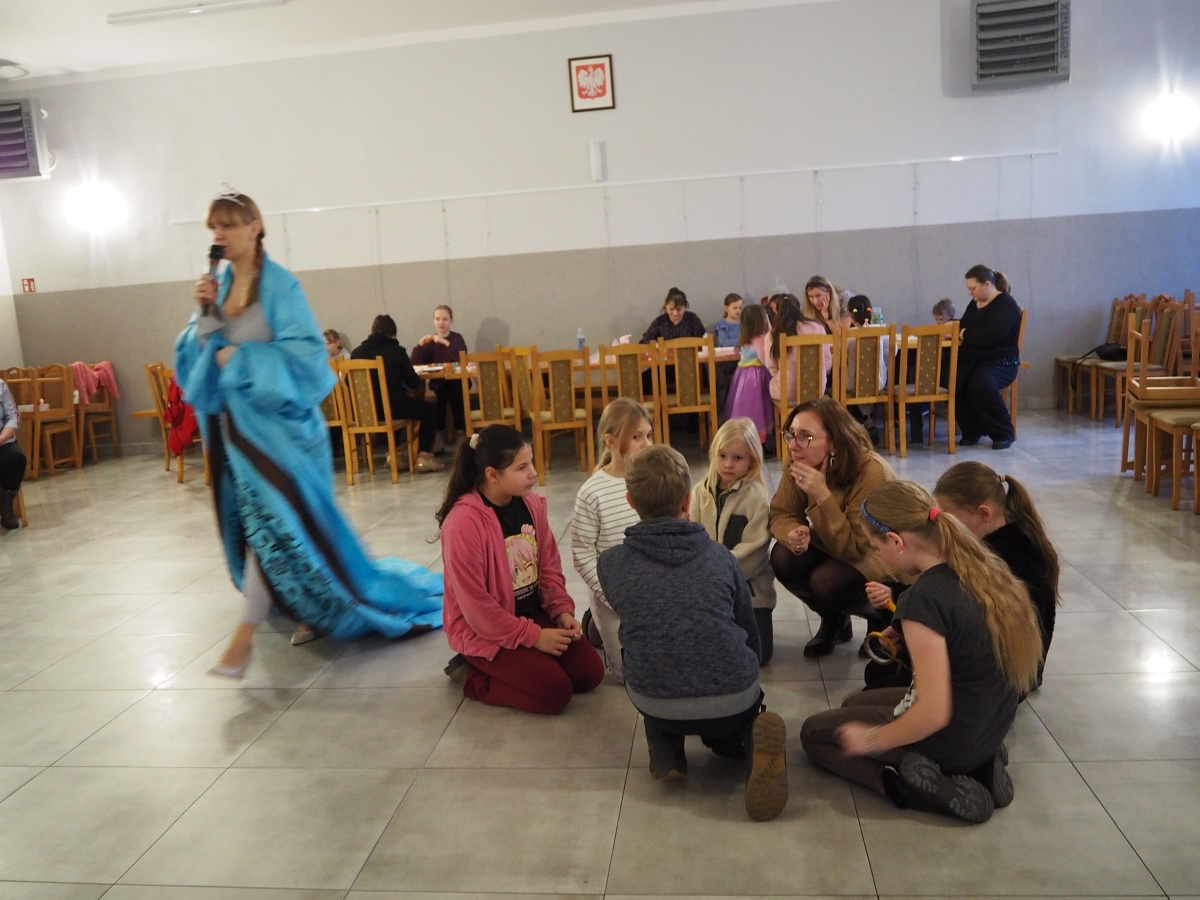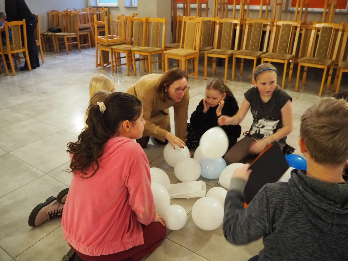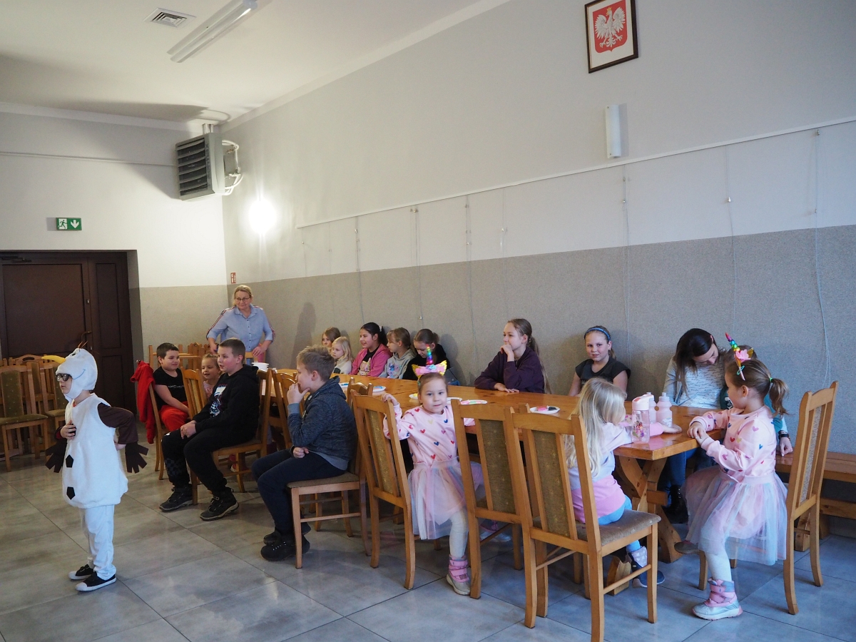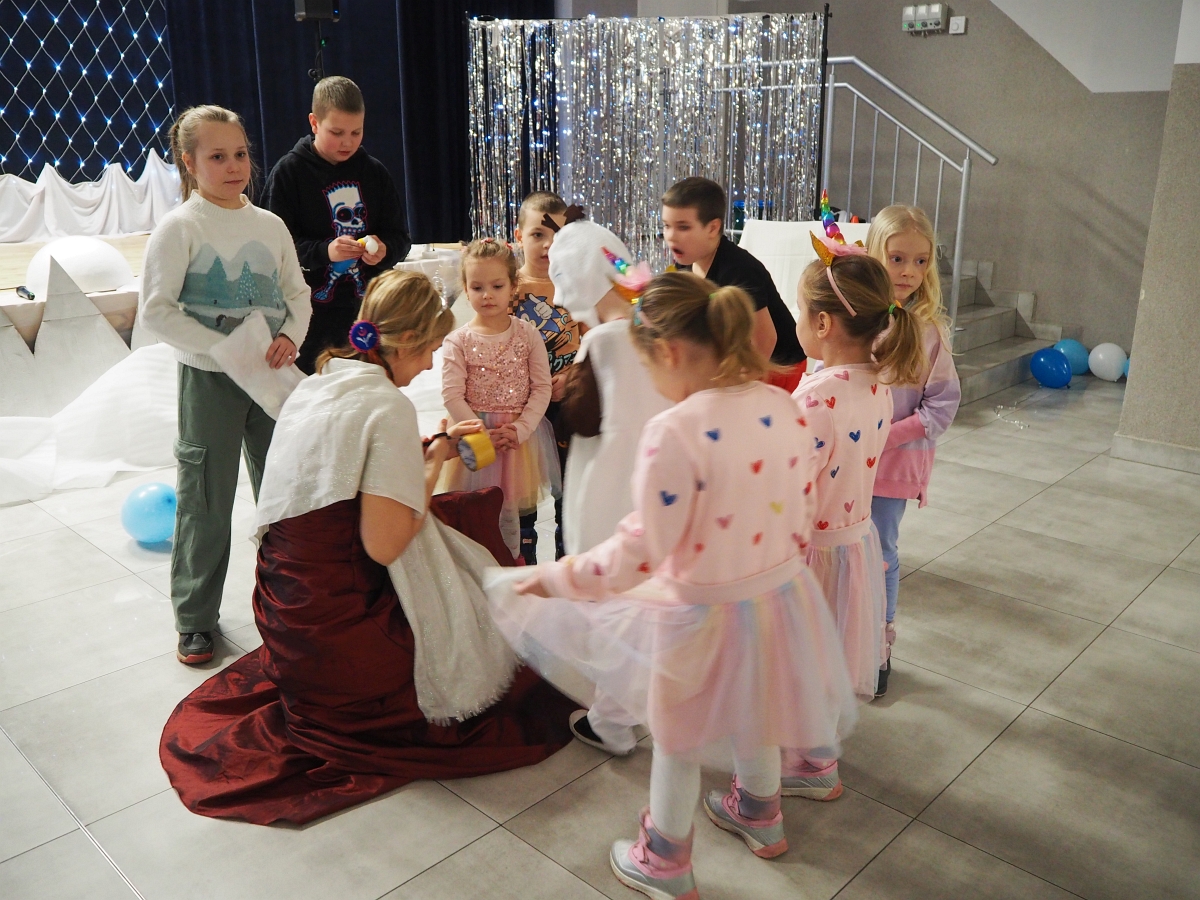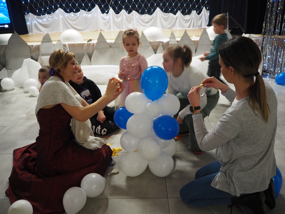 Mroźna aura rzeczywiście pokazała, że nie jest łatwo w mroźnej krainie, dlatego wszystkie zimowe zabawy odbyły się w zaczarowanym na czas spotkania pomieszczeniu wewnątrz budynku. Dzięki niesamowitej inwencji i zaangażowaniu animatorek dzieci bawiły się świetnie.