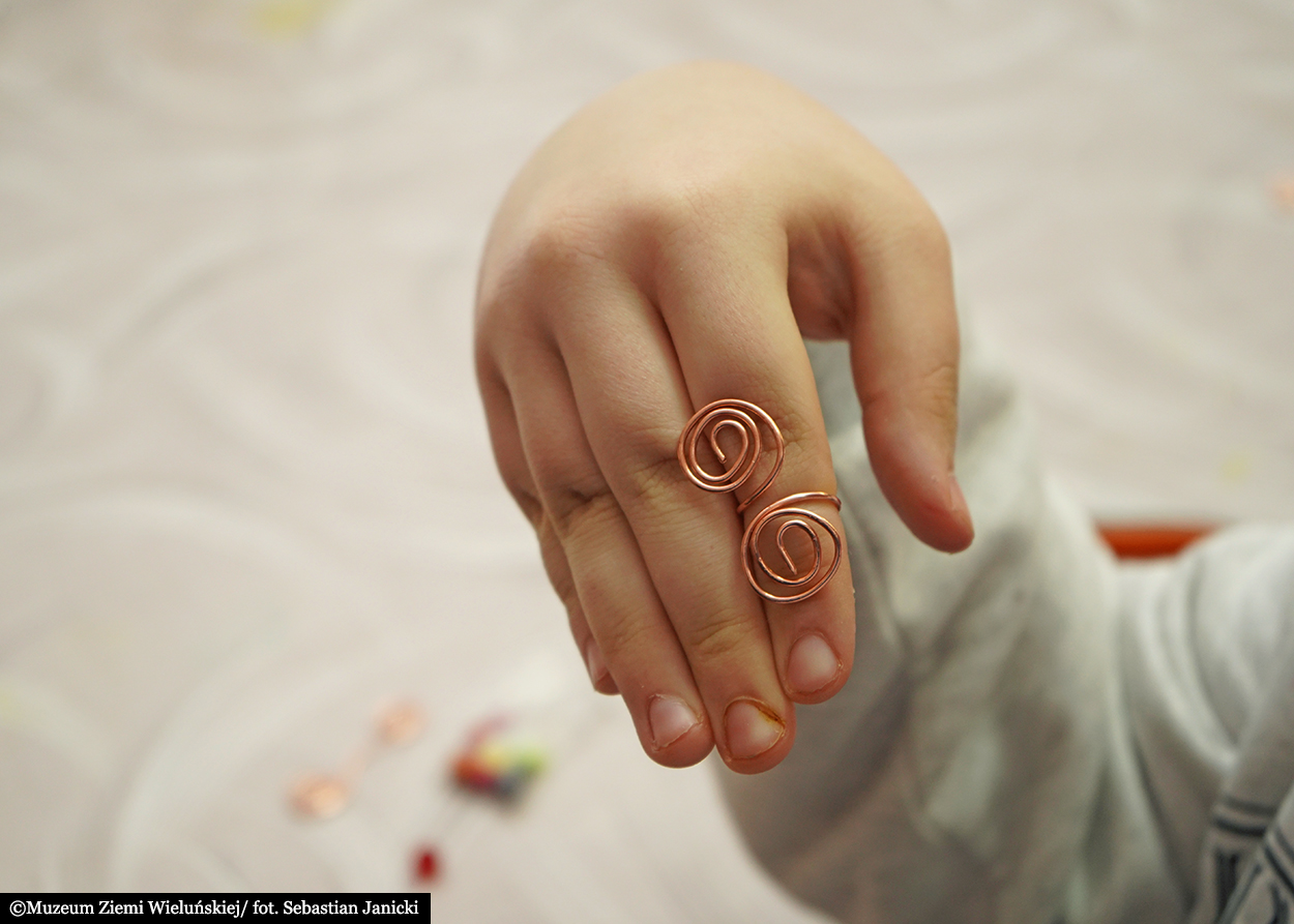 Dużym zainteresowaniem cieszyły się także warsztaty tworzenia biżuterii inspirowanej pradziejowymi wzorami. Powstawały zawieszki binoklowate, naszyjniki i pierścionki, a w zajęciach chętnie uczestniczyli również rodzice i opiekunowie. Wspólna praca była nie tylko twórczym wyzwaniem, ale również okazją do rozmów o historii i budowania wspólnych wspomnień.