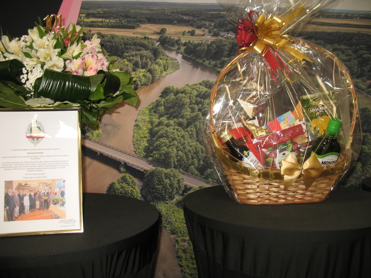 Szczególnym fragmentem spotkania było złożenie życzeń Panu Henrykowi Strózikowi z okazji zbliżającej się 101. rocznicy urodzin. Wyrazem sympatii był okazały bukiet kwiatów, okolicznościowy tort, kosz wiktuałów i wyrzeźbiona głowa konia z rozwiana grzywą, na której wszyscy obecni złożyli swoje podpisy. Było to piękne, rodzinne spotkanie.