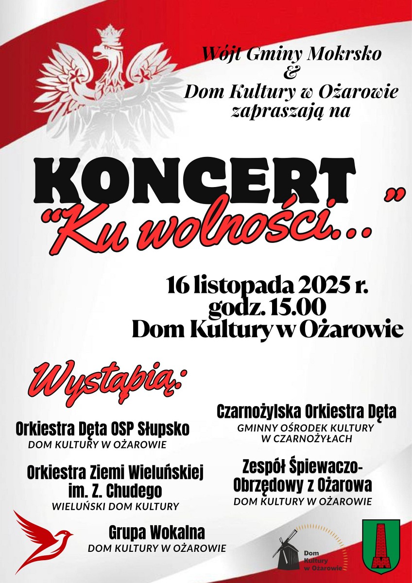 W dniu 16 listopada w Domu Kultury w Ożarowie odbędzie się koncert patriotyczny „Ku wolności”.
