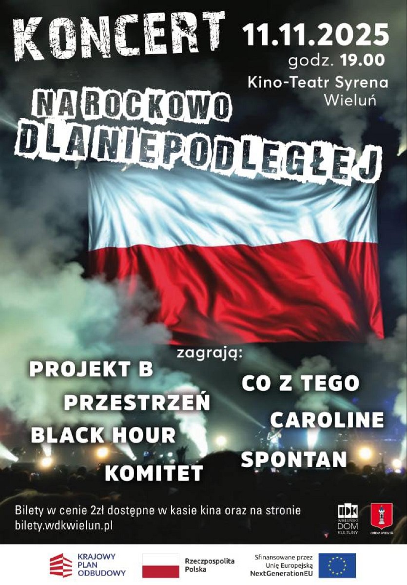 11 listopada, w Kino-Teatrze „Syrena” w Wieluniu, odbędzie się koncert muzyki patriotycznej „Na Rockowo dla Niepodległej”.