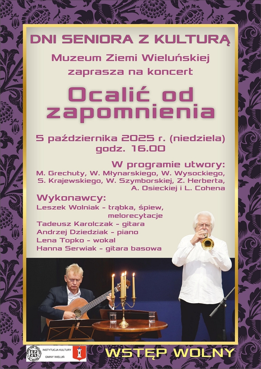 Podczas koncertu, o godz. 16:00 w Muzeum Ziemi Wieluńskiej w Wieluniu, wystąpią: Leszek Wolniak – trąbka, śpiew, melorecytacje, Tadeusz Karolczak – gitara, Andrzej Dziedziak – piano, Lena Topko – wokal oraz Hanna Serwiak – gitara basowa.