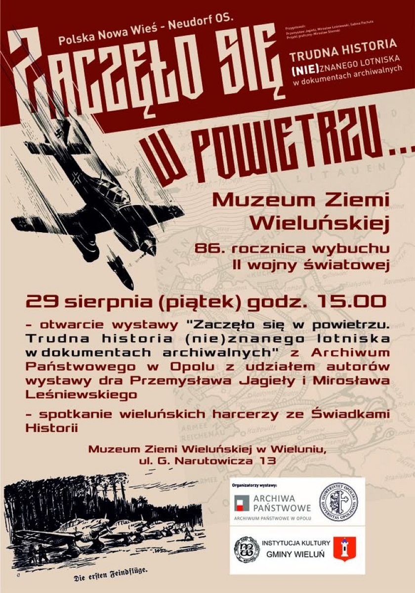 W dniu 29 sierpnia o godz. 15:00 w wieluńskim muzeum zostanie otwarta wystawa „Zaczęło się w powietrzu. Trudna historia (nie)znanego lotniska w dokumentach archiwalnych”.