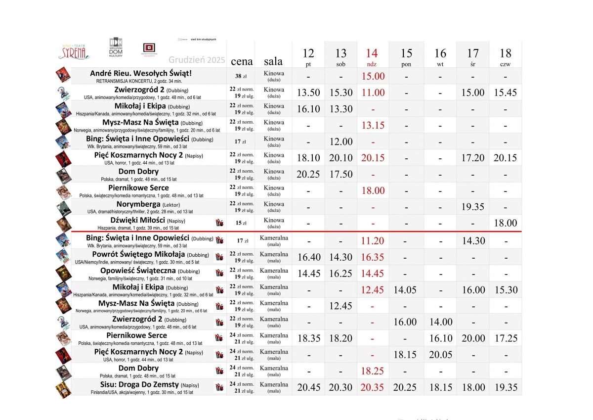 Nowy repertuar będzie grany na deskach „Syreny” w dniach od 12 do 18 grudnia. Szczegóły na plakacie.