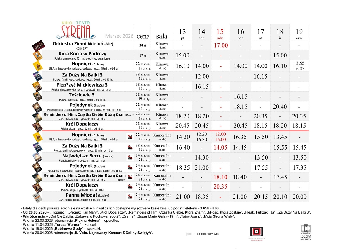 Nowy repertuar będzie grany na deskach „Syreny” w dniach w dniach od 13 do 19 marca. Szczegóły na plakacie.
