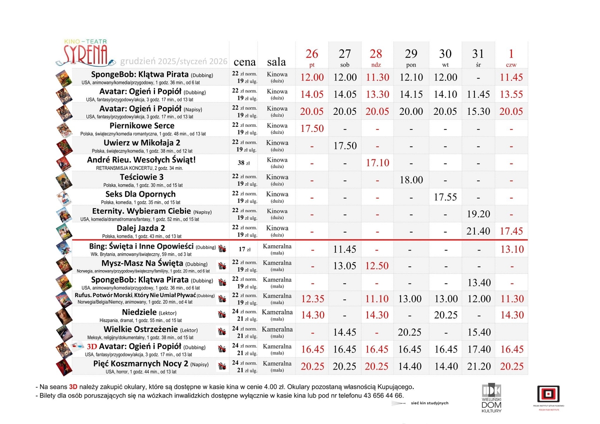 Nowy repertuar będzie grany na deskach „Syreny” w dniach od 26 grudnia do 1 stycznia. Szczegóły w naszym artykule: tutaj oraz na plakacie.