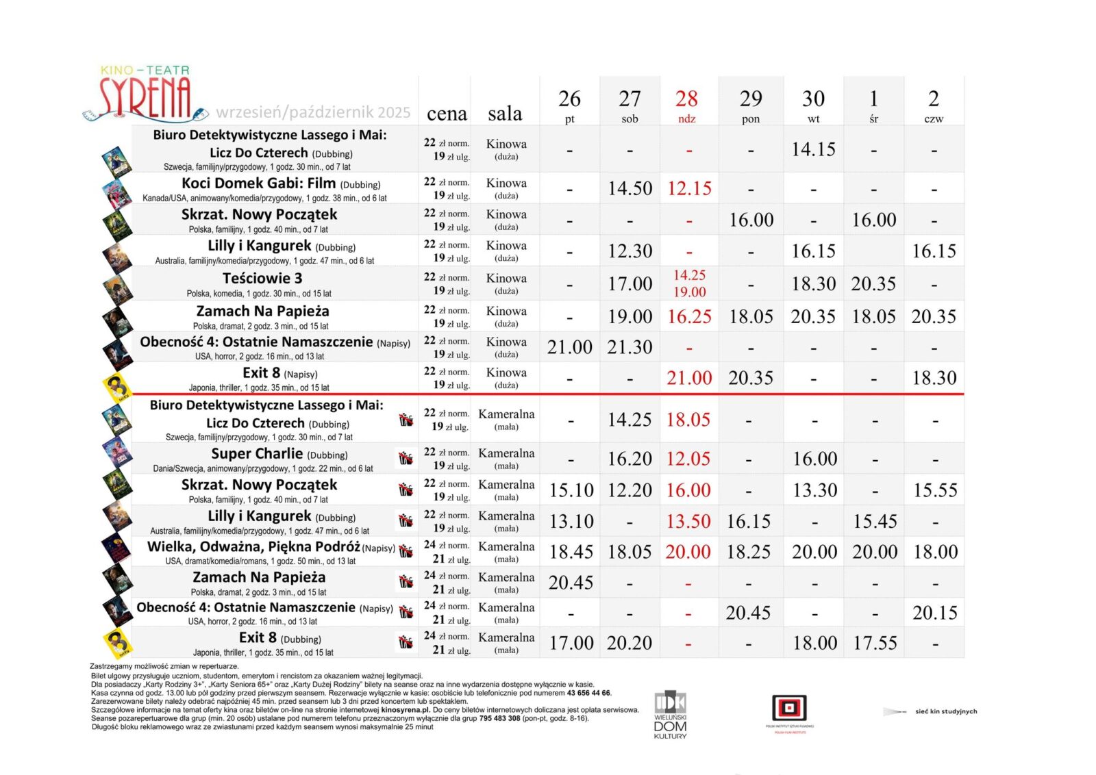 Nowy repertuar będzie grany na deskach „Syreny” w dniach od 26 września do 2 października. Szczegóły w naszym artykule: tutaj oraz na plakacie.