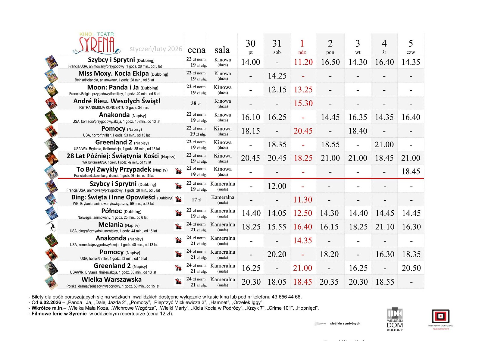 Nowy repertuar będzie grany na deskach „Syreny” w dniach w dniach od 30 stycznia do 5 lutego. Szczegóły z na plakacie.