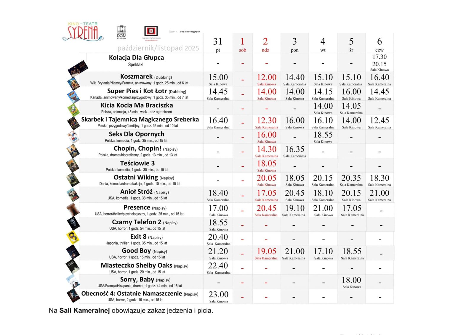 Nowy repertuar będzie grany na deskach „Syreny” w dniach od 31 października do 6 listopada. Szczegóły w naszym artykule: tutaj oraz na plakacie.