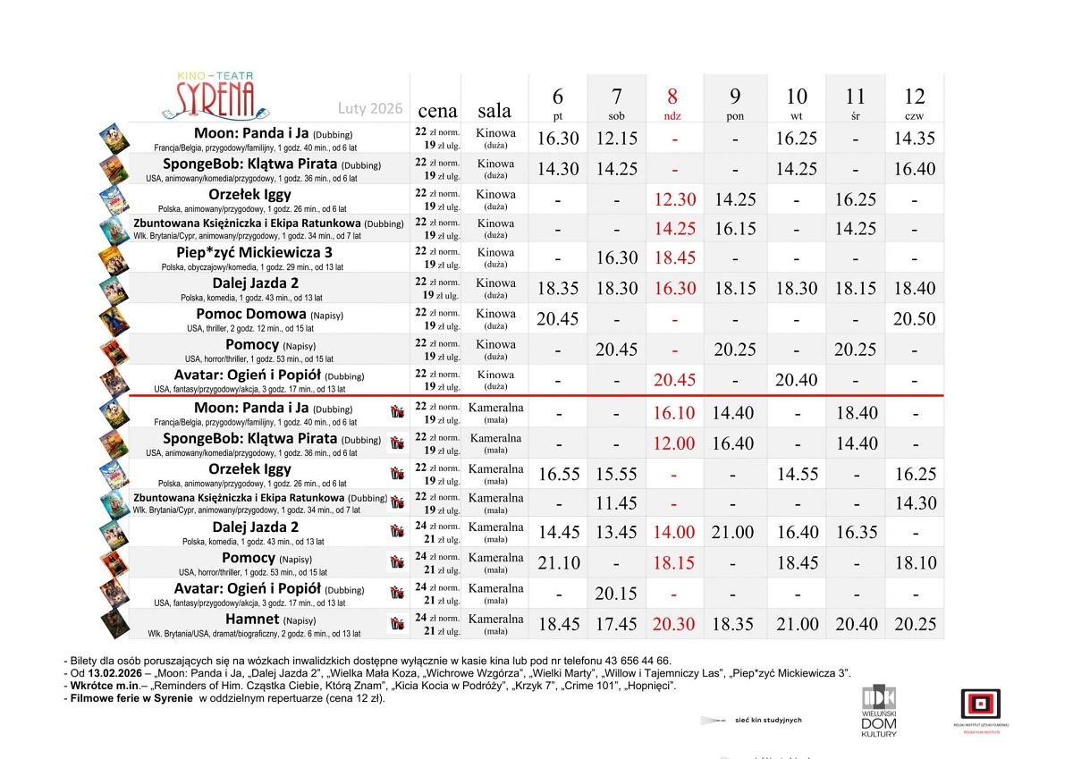 Nowy repertuar będzie grany na deskach „Syreny” w dniach w dniach od 6 do 12 lutego. Szczegóły z na plakacie.