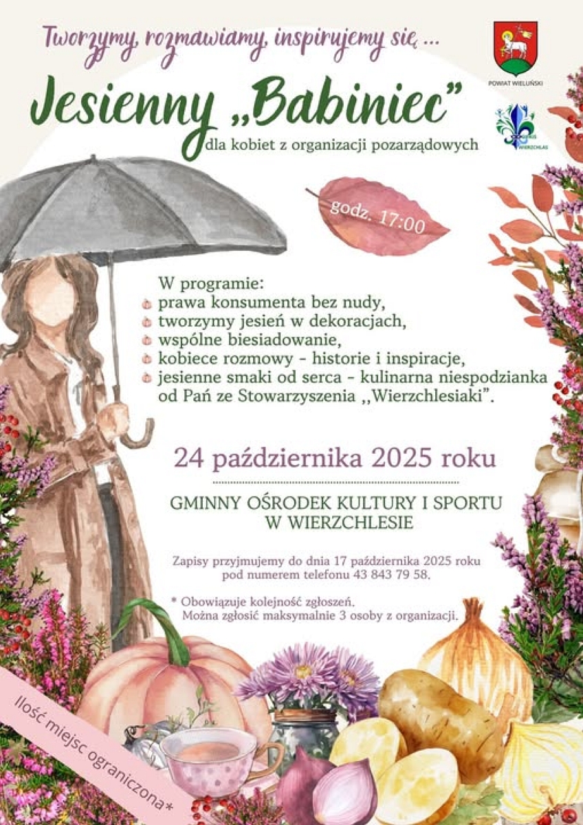 24 października w Gminnym Ośrodku Kultury i Sportu w Wierzchlesie odbędzie się spotkanie Jesienny „Babiniec”.