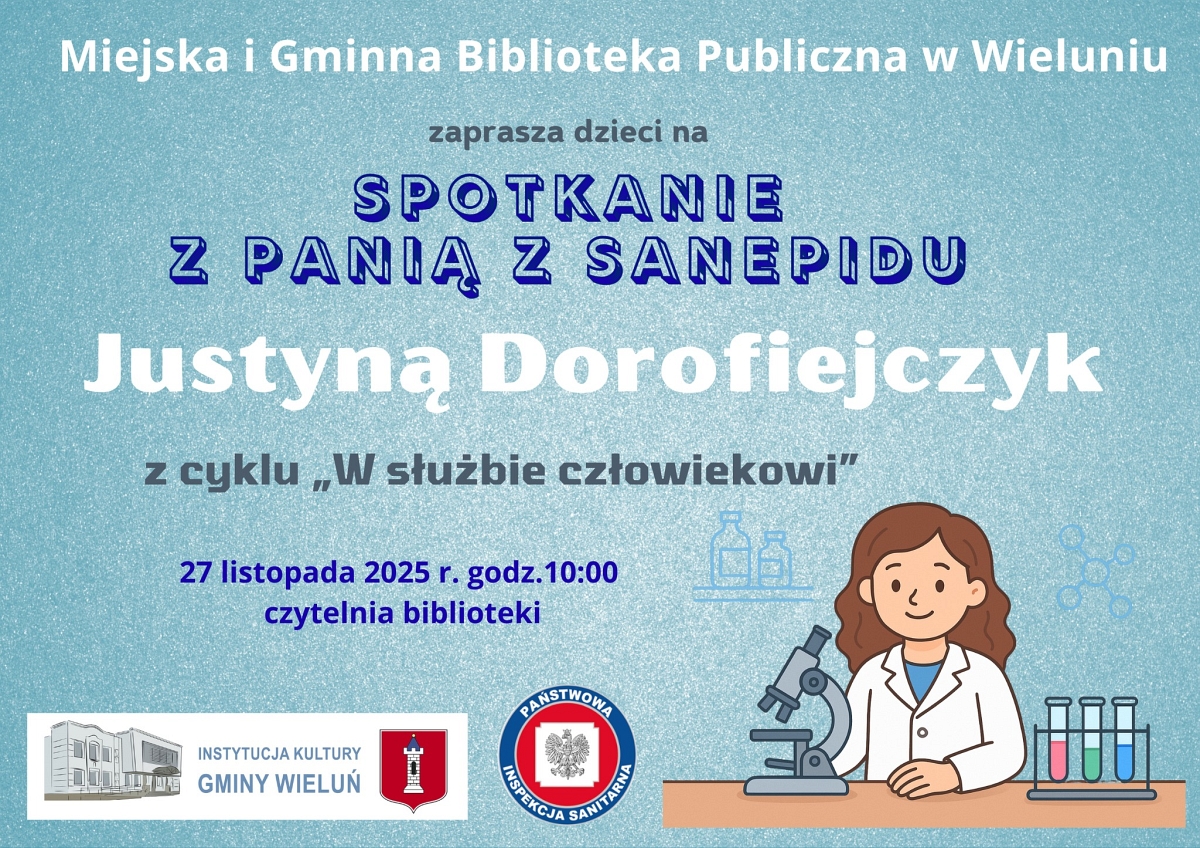 Miejska i Gminna Biblioteka Publiczna w Wieluniu zaprasza na spotkanie z panią z Sanepidu Justyną Dorofiejczyk z cyklu „W służbie człowiekowi”.