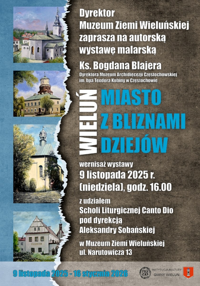 W dniu 9 listopada odbędzie się Wernisaż autorskiej wystawy malarskiej ks. Bogdana Blajera „Wieluń. Miasto z bliznami dziejów”.