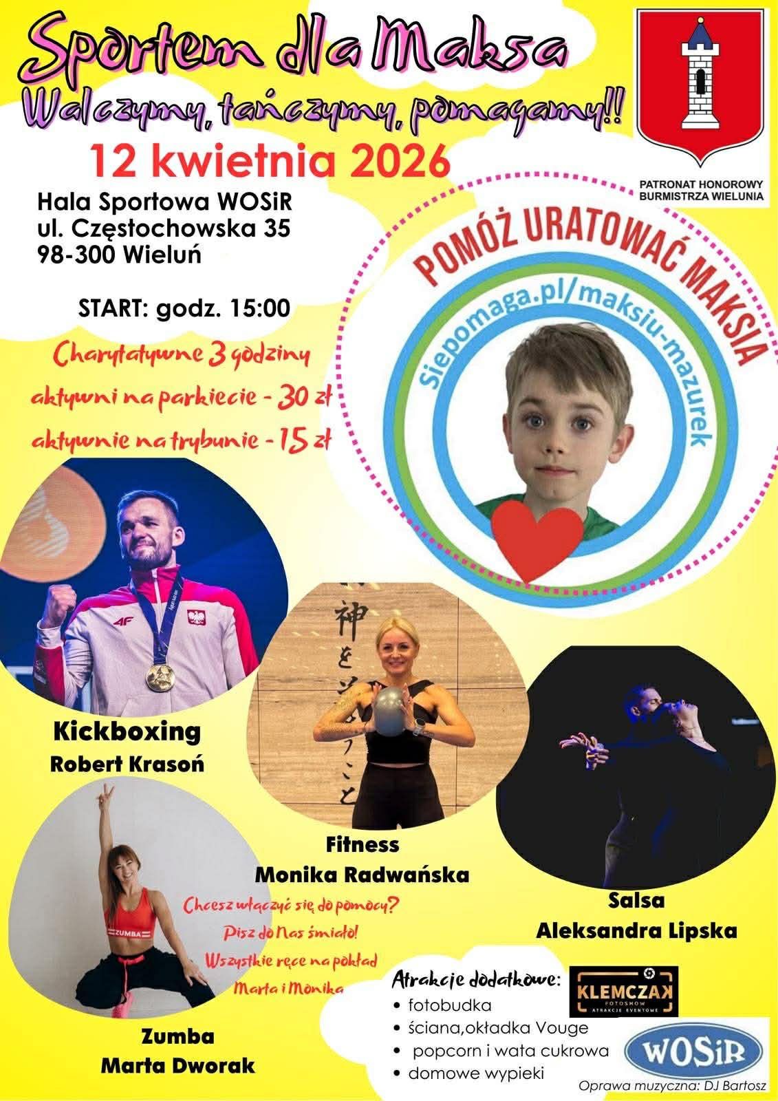 Akcja, od godz. 15:00 w hali WOSiR w Wieluniu, będzie okazją do miłego spędzenia czasu w połączeniu ze wsparciem 10-letniego Maksia Mazurka w jego trudnej walce o zdrowie i przyszłość.